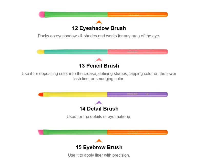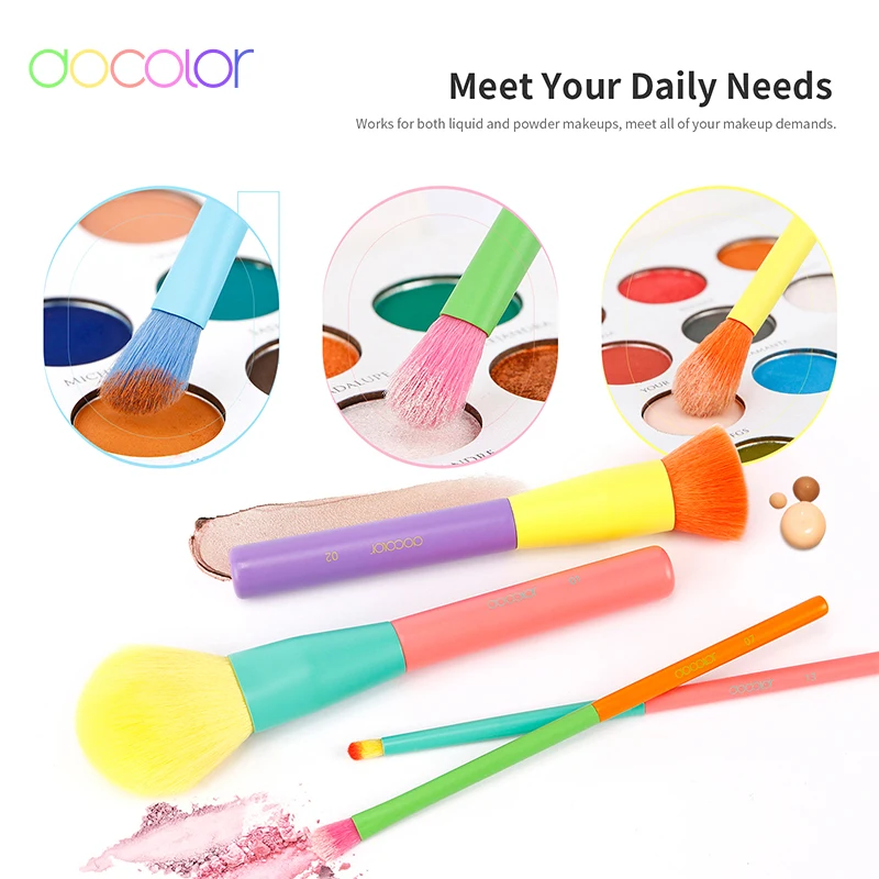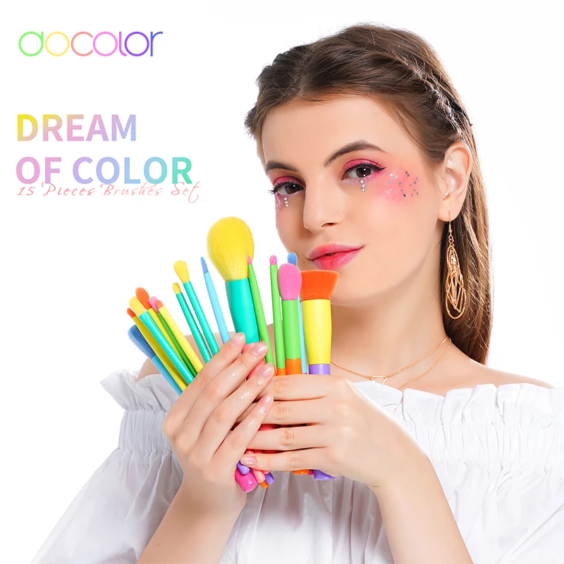 Docolor 15 шт., кисти для макияжа, профессиональная пудра, основа, тени для век, набор кистей для макияжа, синтетические волосы, цветные кисти для макияжа