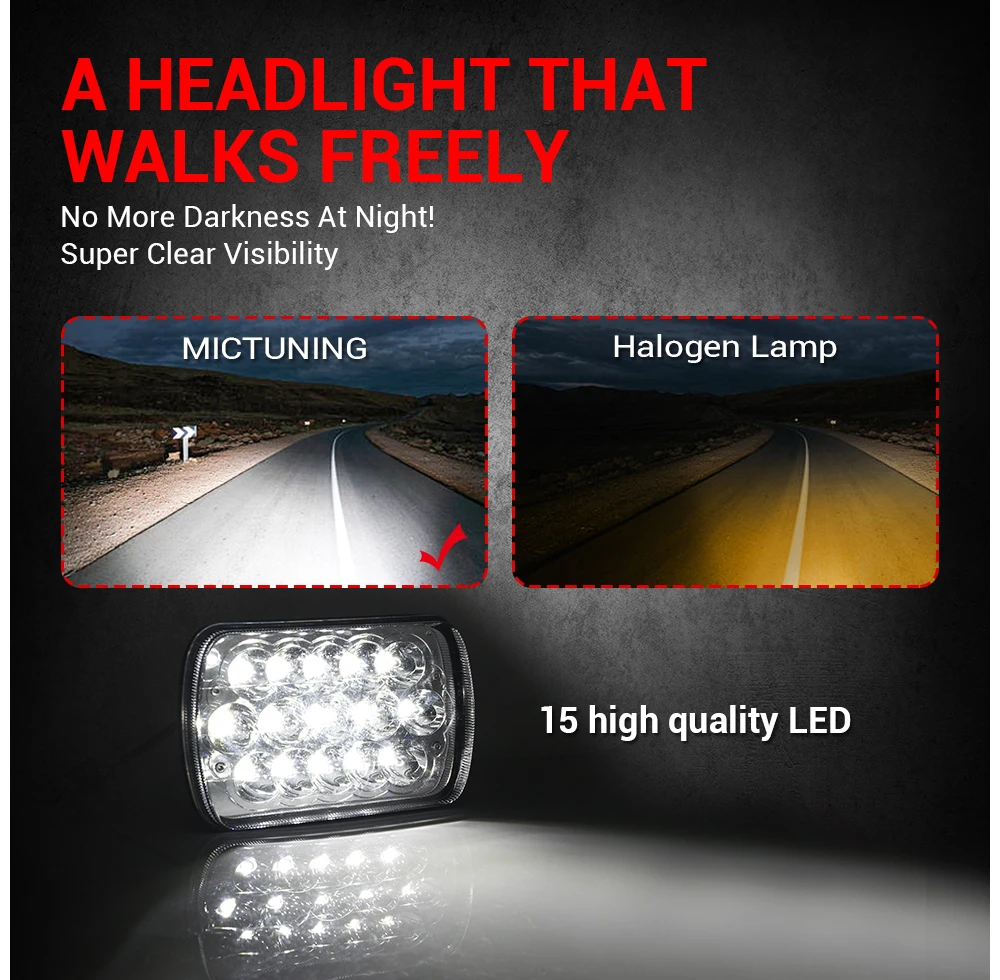 MICTUNING 2 шт. 45 Вт светодиодный рабочий светильник 7x6 Кристалл квадратный Высокий Низкий Луч H4 проектор светодиодный головной светильник s Cherokee Wrangler передний светильник s
