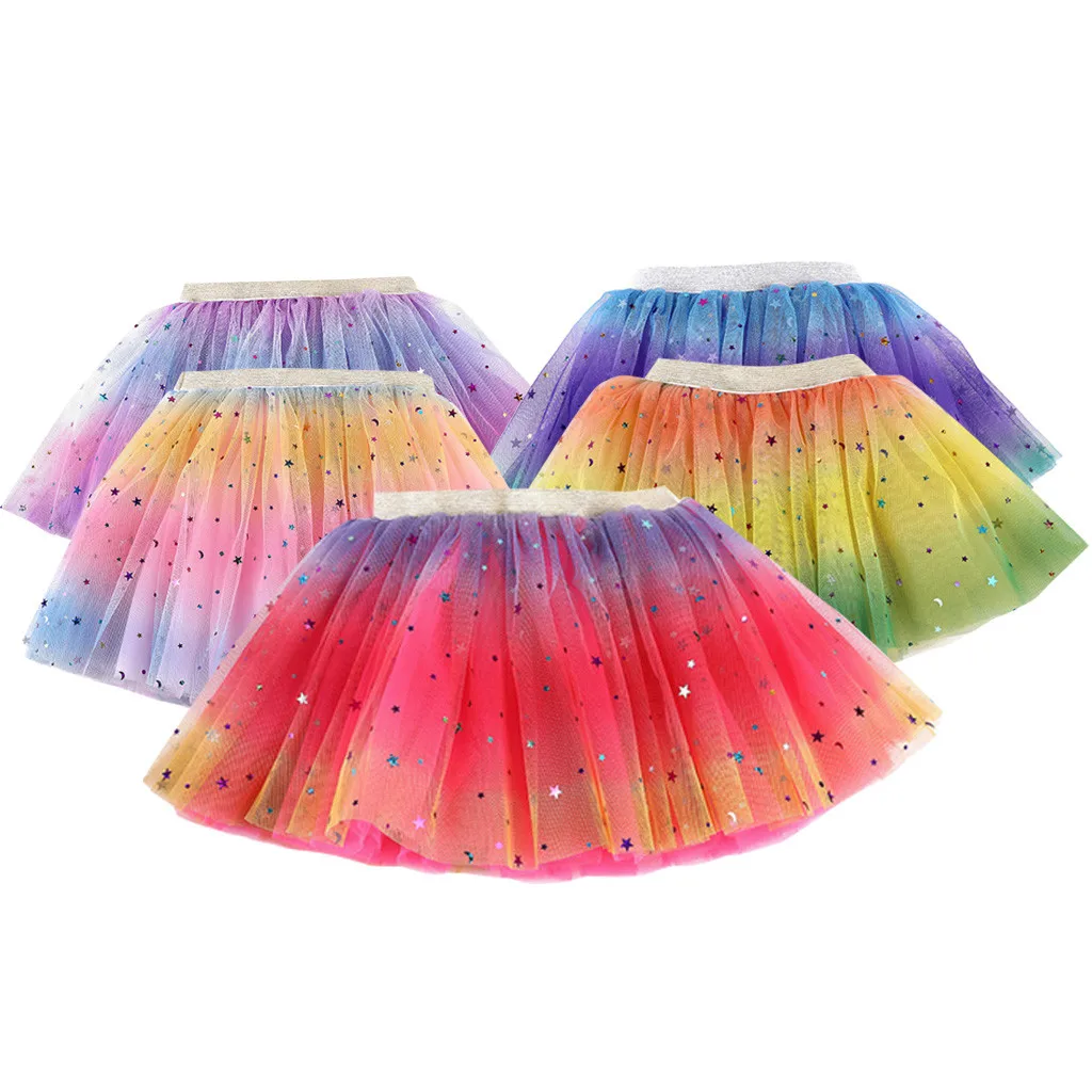 Модная юбка для девочек Новая юбка в горошек, расшитая блестками, с сеткой и радугой юбка-пачка юбка-американка одежда для малышей юбка для детей 50 *