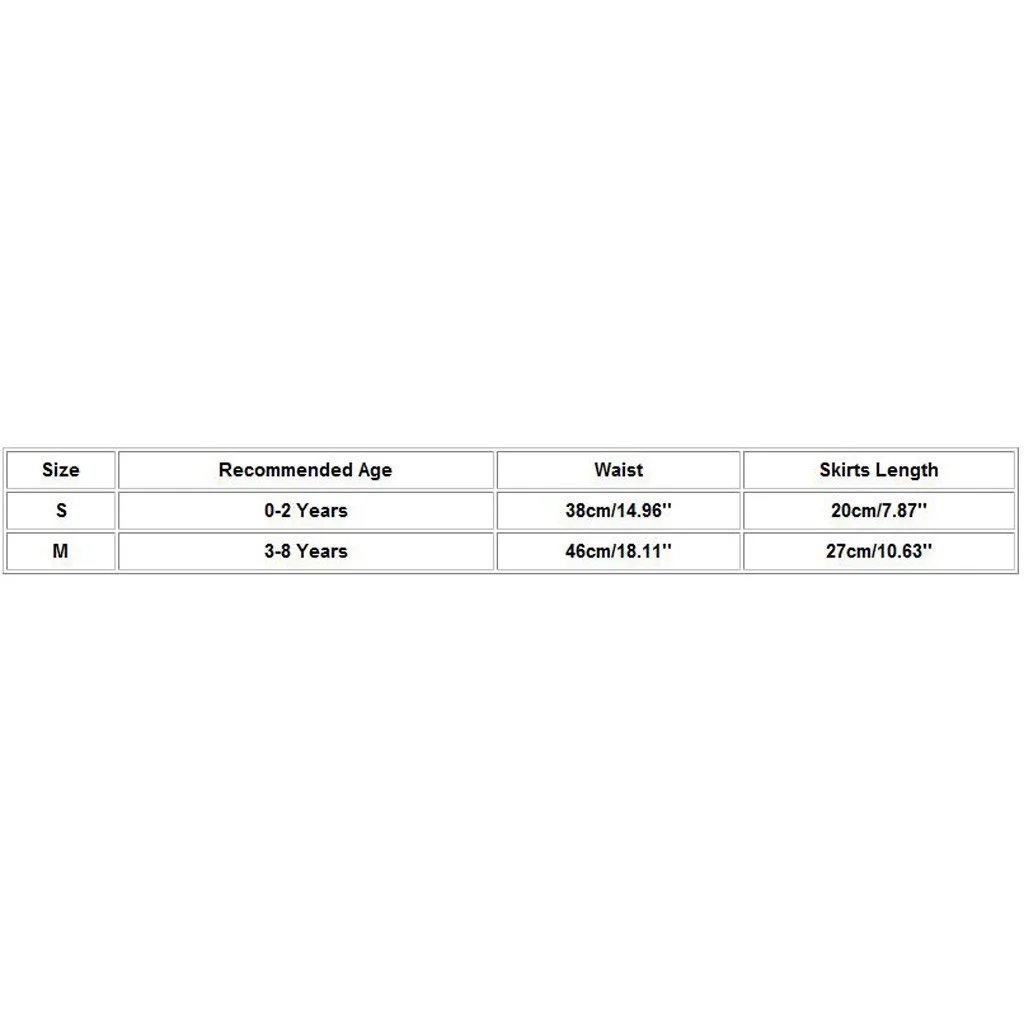 Размер Рекомендуемый возраст Талия Длина юбки S От 0 до 2 лет 38 см/14,96'' 20 см/7,87'' М 3-8 лет 46 см/18,11'' 27 см/10,63''