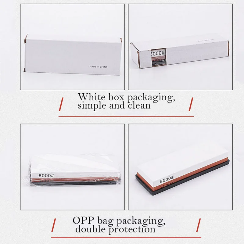 1. Дизайн: 240/800, 400/1000, 600/1500, 1000/3000, 1000/4000, 1000/6000, 2000/5000, 3000/8000, 5000/10000 зернистый двухсторонний заточный камень.
