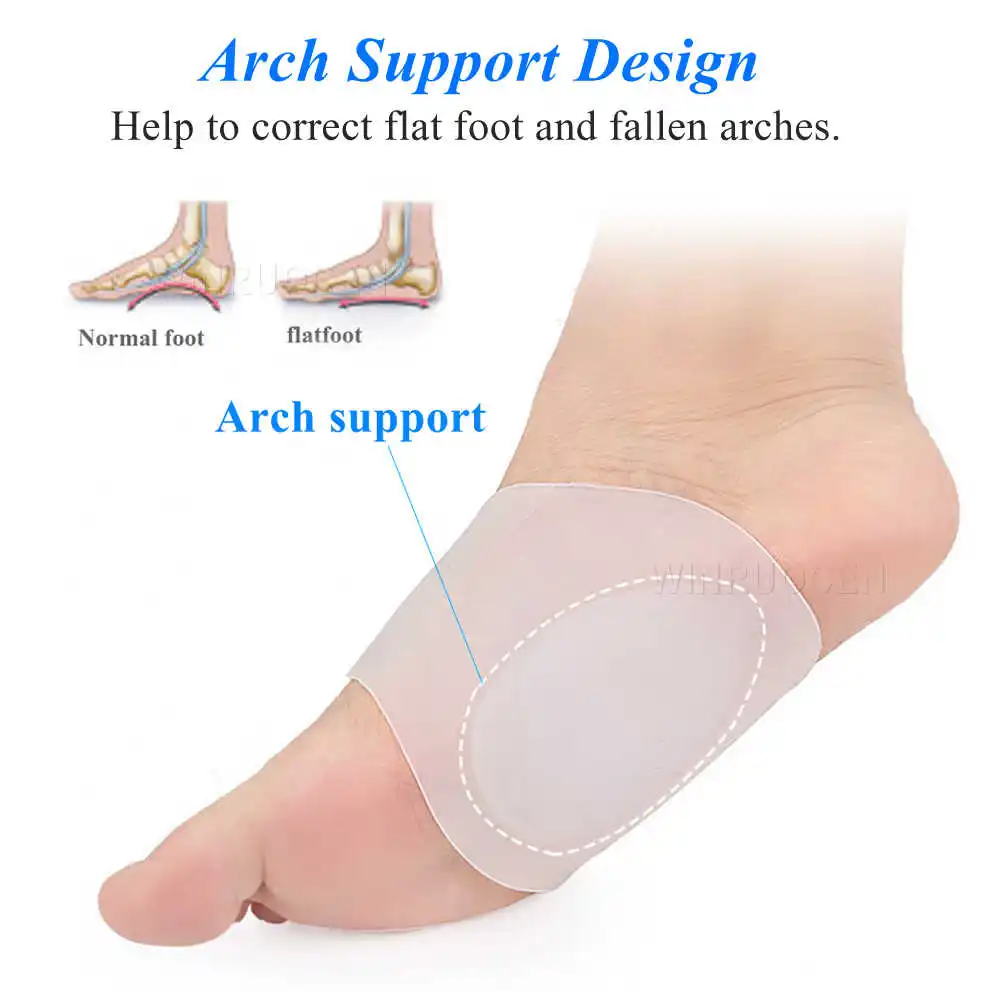 Hot New 1 Pair Silicone Insole Orthopedic Insoles O-Type Leg Foot Valgus Correction Non Slip Description High quality silicone material, soft and comfortable, with strong adsorption and aging resistance. Arched design, more ergonomic, conducive to disease prevention and correction of flat feet. The center of the arch pad is designed with a rounded bulge and has a certain massage effect. Help to correct flat foot and fallen arches. Gel arch shock absorption gasket inside for protect your transverse arch. Reduce arch, knee, hip and lower back pain. Suitable for those who have pain in foot valgus, X-legs, walking and so on. Fits the heart position, promotes blood circulation, and is more beneficial to your health. firmly bonded, not easy to fall off. Convenient and fast, it can be reused many times. Easy to carry, Suitable for men and women, suitable for all types of shoes. Color: Complexion, white Note: If you have problems receiving the package, please contact us before posting a comment. We will patiently solve it for you. Package includes: 1 Pair of arch support correction bandages