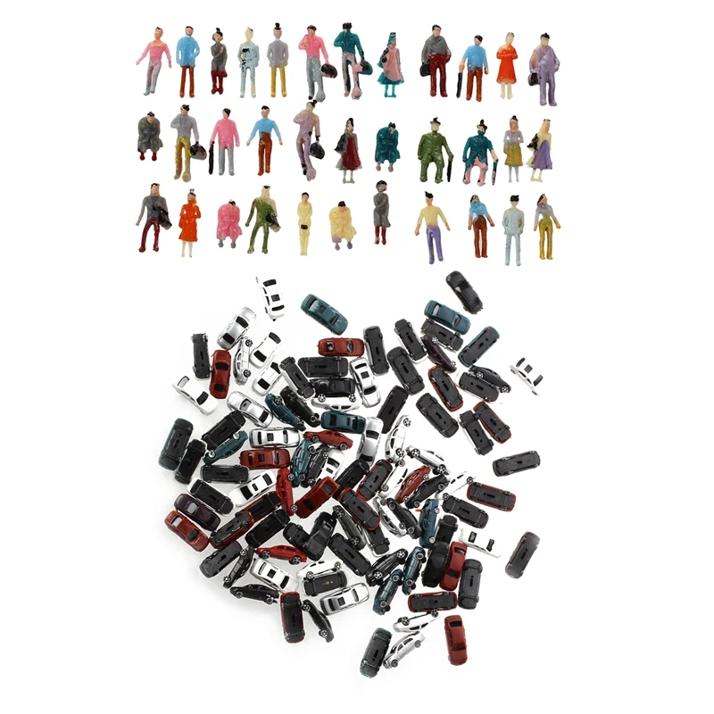 Набор 2: 100 шт. окрашенная модель автомобиля + 100 шт. модель поезда
