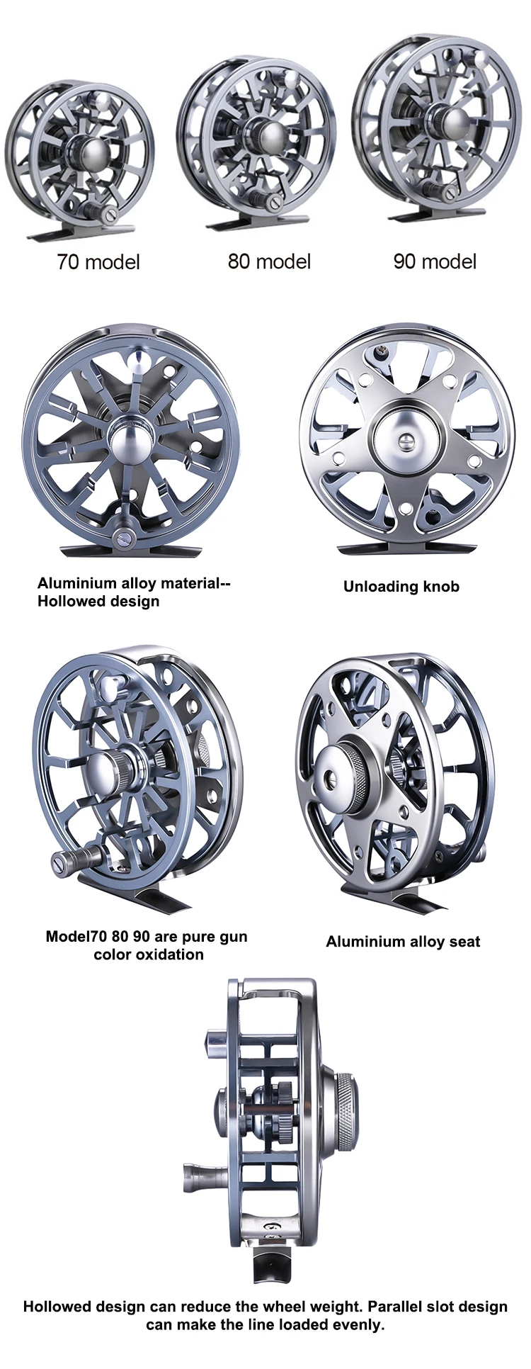 2. Низкопрофильная катушка из алюминиевого сплава для плавного спуска линии.
