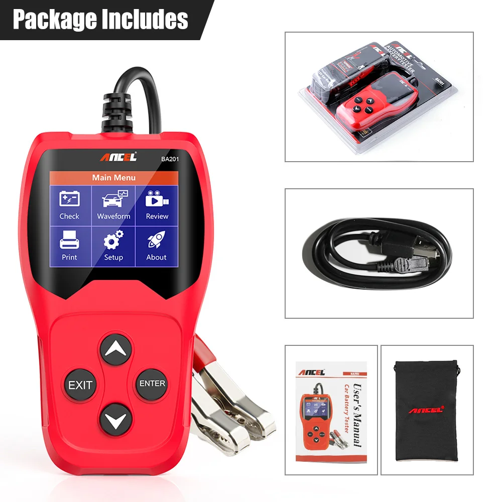 1. Быстрая и Плавная скорость работы с STM-32 набором микросхем 2. Точные результаты тестирования, использование высокоточного усилителя и калибровка с помощью профессионального инструмента тестирования батареи, точность чтения BA201 до 99%. 3. Широкий диапазон тестирования от 100- 2000cca, 3- 220 AH, лучший на рынке. 4. Мониторинг графического напряжения аккумулятора в реальном времени, может быть анализ данных батареи более точным. 5. Уникальные результаты работы батареи отображаются в процентном и измерительном режиме. 6. Протестируйте все автомобильные свинцово-кислотные батареи, включая обычные свинцово-кислотные батареи, AGM плоские батареи, AGM спиральные батареи, и гелевые батареи и т. Д. 7. Защита от полярности обратного соединения, обратное соединение не повредит тестер и не повлияет на транспортное средство и батарею. 8. Непосредственно протестируйте батарею с потерей электричества, не нужно полностью заряжать перед тестированием. 9. Стандарты тестирования включают в настоящее время большинство в мире стандартов батареи, CCA, BCI, CA, MCA, JIS, DIN, IEC, EN, SAE, GB. 10.BA201 используется для тестирования широкого диапазона батарей 12 В (пусковой [SLI], глубоких циклических и морских) влажных (затопленных), VRLA или не требующих технического обслуживания (MF), герметичный не требующий обслуживания (SMF), коврик из абсорбционного стекла (AGM) и гелевая ячейка EPB