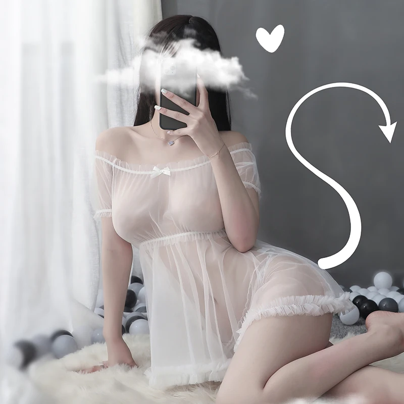 Кружевное нижнее белье Черно-белое прозрачное Милое сексуальное милое ночное белье принцессы для сна Пижама Лолита кавайное шифоновое платье