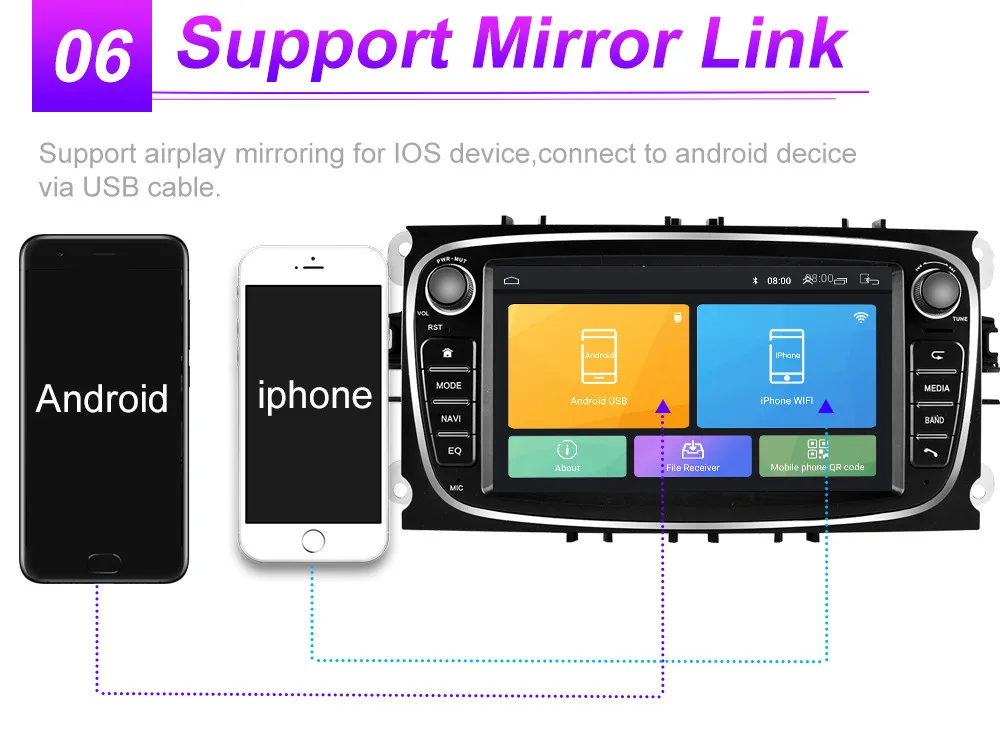 . Операционная система: чистая Операционная система Android ОЗУ + ПЗУ: 1 ГБ, 16 ГБ, 2 ГБ, 16 ГБ, 2 Гб, 32 ГБ Поскольку система занимает внутреннюю память, операционная система занимает около 4-6 ГБ памяти. Бесплатная установка карта Процессор: Quad-Core Поддержка изменить логотип логотипа, пароль заводской комплект: 8888, изменить логотип Разъем питания: plug and play Встроенный GPS -Поддержка 2D HD и 3D карт Разрешение: 1024*600 пикселей, емкостный экран -Интернет-развлечения, встроенный модуль Wi-Fi. -Поддержка HD 1080p видеоигр, зеркальная поддержка link и Airplay. -Радио: FM-радио Функция двойной зоны (пользователь может слышать музыку или радио, находясь в режиме GPS-навигации) -Встроенный Bluetooth handsfree и телефонная книга, поддержка A2DP, воспроизведение музыки напрямую по телефону. (Вам нужно договориться о авторизации телефона и синхронизации контактной информации в настройках телефона) Совместимость с контролем рулевого колеса Электронная и механическая ударная система --- Подача заявки на высокой мощности стереофонический звуковой выход, поддерживает 4 колонки ---- Поддержка камеры заднего вида, inpu