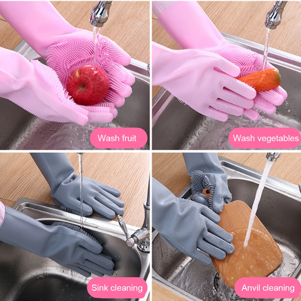 1.This soft Dishwashing Gloves is made of high-quality and environment friendly silicone. Food grade silicone