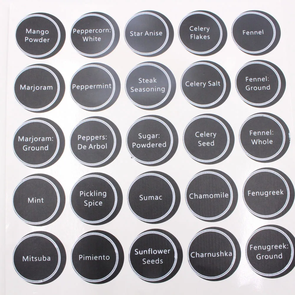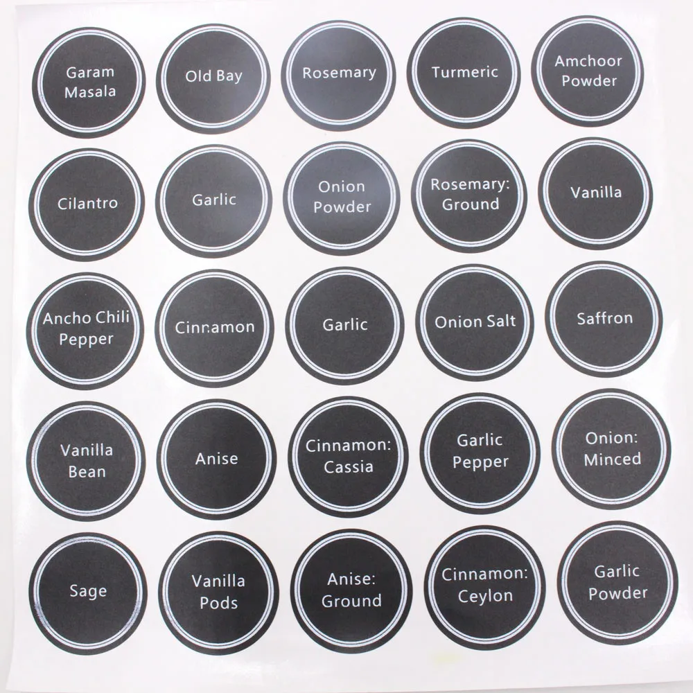 Круглая Этикетки для специй были разработаны для большинства банок для специй и этикеток для магазинов Они больше подходят для хранения банок и канистр больших размеров.