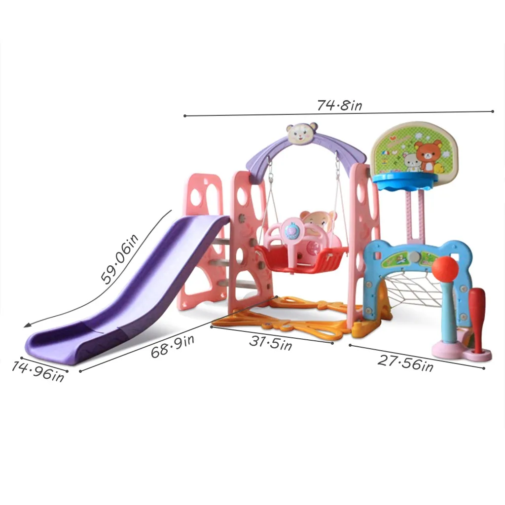 6-в-1 Функция: Этот красочный 6-в-1 игровой набор предлагает 6 функций: плавное скольжение, прочный, качели, Баскетбол стенд, а также набор Баскетбол/Футбол/Бейсбол/комбинаций, И подходит для домашнего и наружного использования. Все активности элементы являются размер затрудняетесь в выборе правильного размера для малышей. Прочный: Эта яркий и красочный 6-в-1 игровой набор выполнен из прочного и нетоксичный из полиэтилена высокой плотности, благодаря чему ваш ребенок может слайд в целости и сохранности. Это яркий и красочный 6-в-1 игровая среда могут сопровождать ребенка до тех пор, пока он не вырастет. Гладкая шлепанцы без задника с открытыми пальцами и безопасные качели: детские шлепанцы без задника с открытыми пальцами у откос, и легко подъем шаги обеспечивают гладкое скольжение нужный размер для вашего ребенка. Весь направляющий рельс для подключается плавно без краев, подходит для нежной детской кожи. Детские качели может держать максимум 66 фунтов (с прочные вешалки). Веревок качелей изготовлены из высококачественных материалов, достаточно долго и безопасно, поэтому он безопасен для качания вручную во время игры. Баскетбол стеллаж для выставки товаров и сумка в комплекте: Баскетбол стеллаж для выставки товаров конструирована согласно в европейском и американском стиле, которая очень подходит для вашего маленького спортсмена играть Баскетбол. Вы также можете легко удалить ее в тех случаях, когда вы не хотите использовать его. Легко собрать: Этот красочный 6-в-1 игровой набор может быть быстро собирается и запчасти к ним может быть легко собраны в нашем интернет-магазине несколько шагов в соответствии с инструкциями. В комплект входят все необходимые дополнительные аппаратные средства и не требует сложных инструментов. Это обеспечит вашим детям бесконечные приключения! Для их производства используется его внутри страны или в других странах. Лестница обеспечивает безопасную и легкой задачей для детей.Параметры:
