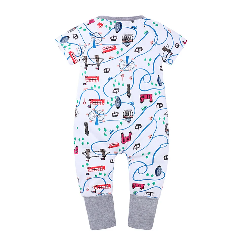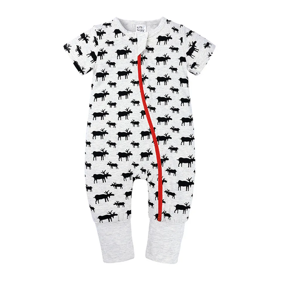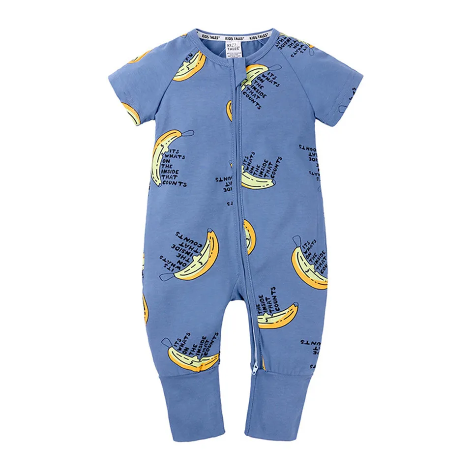 0-24M Summer Toddler Boys Clothes Newborn Baby Girls Dinosaur Zipper Rompers Cartoon Baby Onesies Cotton Short Sleeve Kid Romper