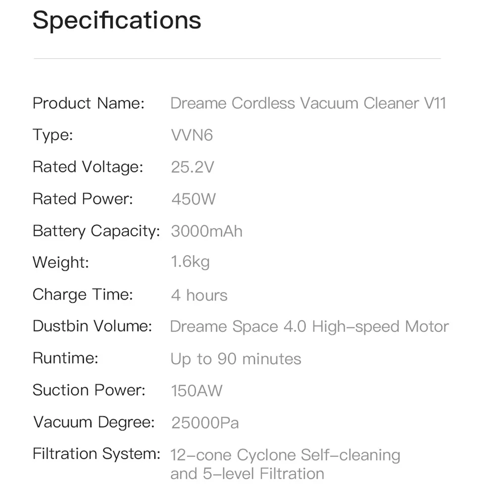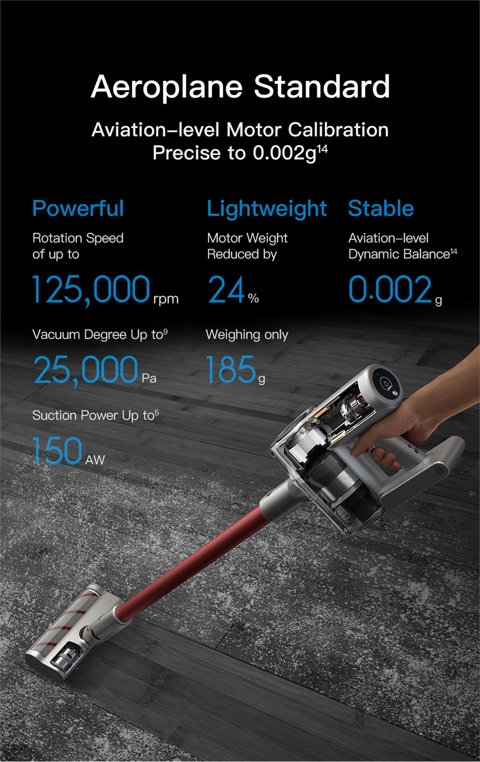 Высокоскоростной двигатель Dreame SPACE 4,0 с выдающимися инженерами из аэрокосмического feld, команда Dreame Aerodynamics R & D имеет 26 патентов на основные технологии только в высокоскоростной моторной области, оснащен новейшим двигателем Dreame s 125000 rpm, V11 обеспечивает быструю, мощную и стабильную производительность