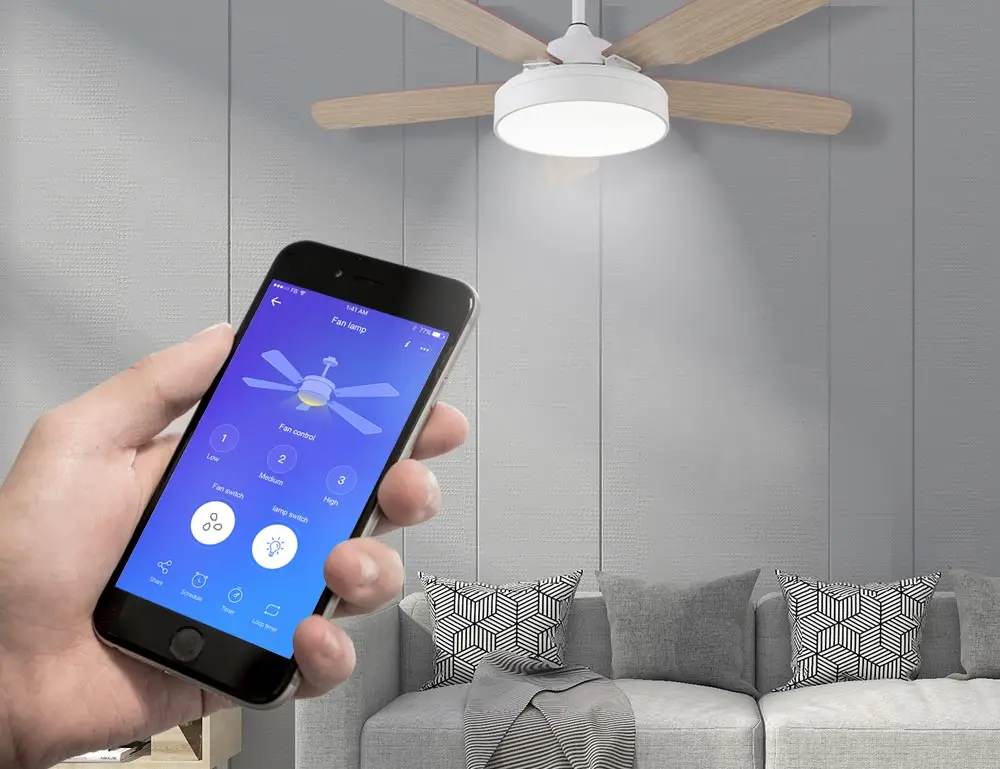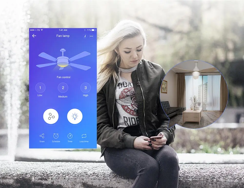 Управляйте потолочным вентилятором с помощью освещения через приложение eWeLink, дома или удаленно