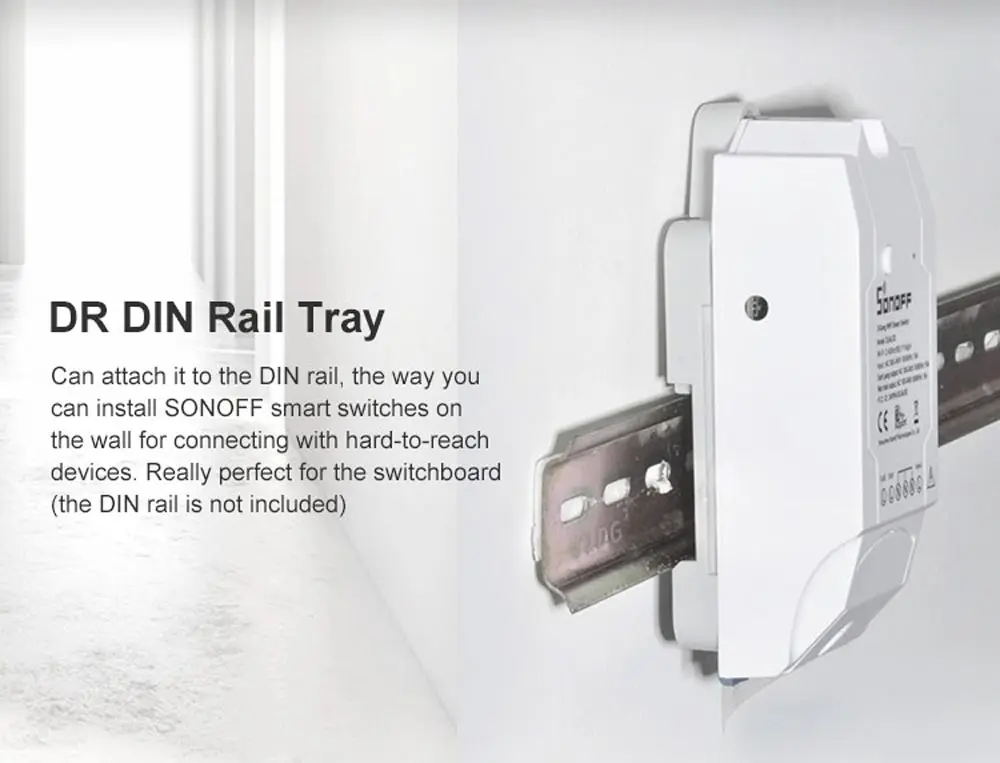 Как вы знаете, большинство продуктов Sonoff не монтируются на din-рейке, что затрудняет доставку продуктов Sonoff в распределительный щит. Теперь мы запускаем еще один недорогой и практичный аксессуар-Sonoff DR - DIN Rail Tray. Мы предоставляем этот продукт, чтобы наши пользователи могли легко установить переключатели Sonoff на их коммутатор.