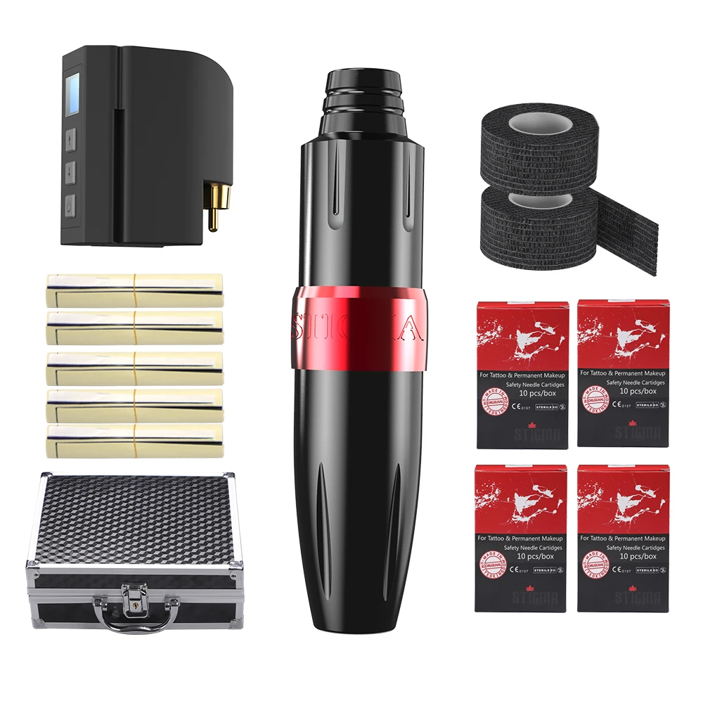 1. Ручка для нанесения татуировок 2. Беспроводная аккумуляторная батарея 3,40 шт иглы (1203RL,1205RL,1207RL,1215RM 4. Повязки...