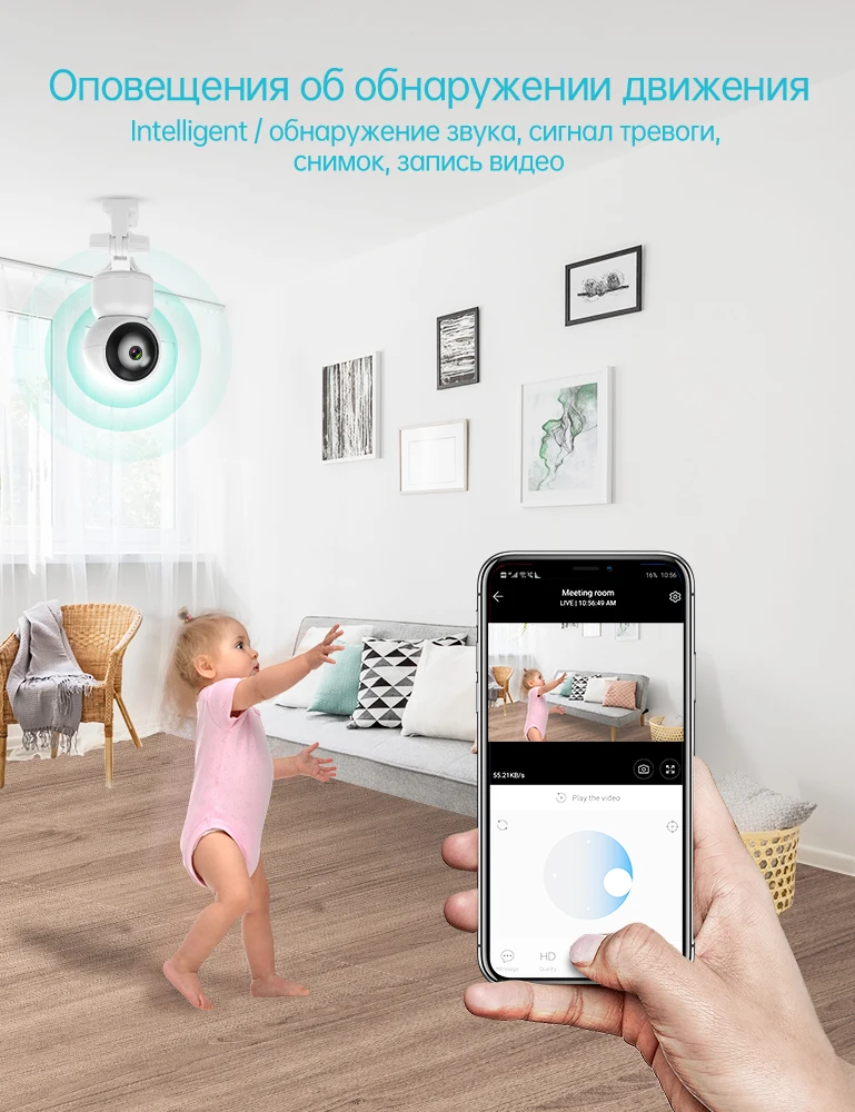 С помощью камеры видеонаблюдения все потенциально опасные действия и звуки в вашем доме могут быть точно идентифицированы и немедленно отправлены на ваш мобильный телефон, поэтому вы не беспокоитесь, когда вы находитесь вне дома. Установите желаемые позиции, и вы можете просмотреть желаемое положение одним касанием. Или вы можете настроить автоматическое слежение за детской камерой и получить полный горизонтальный вид вашего дома, компании, магазина и т. д.