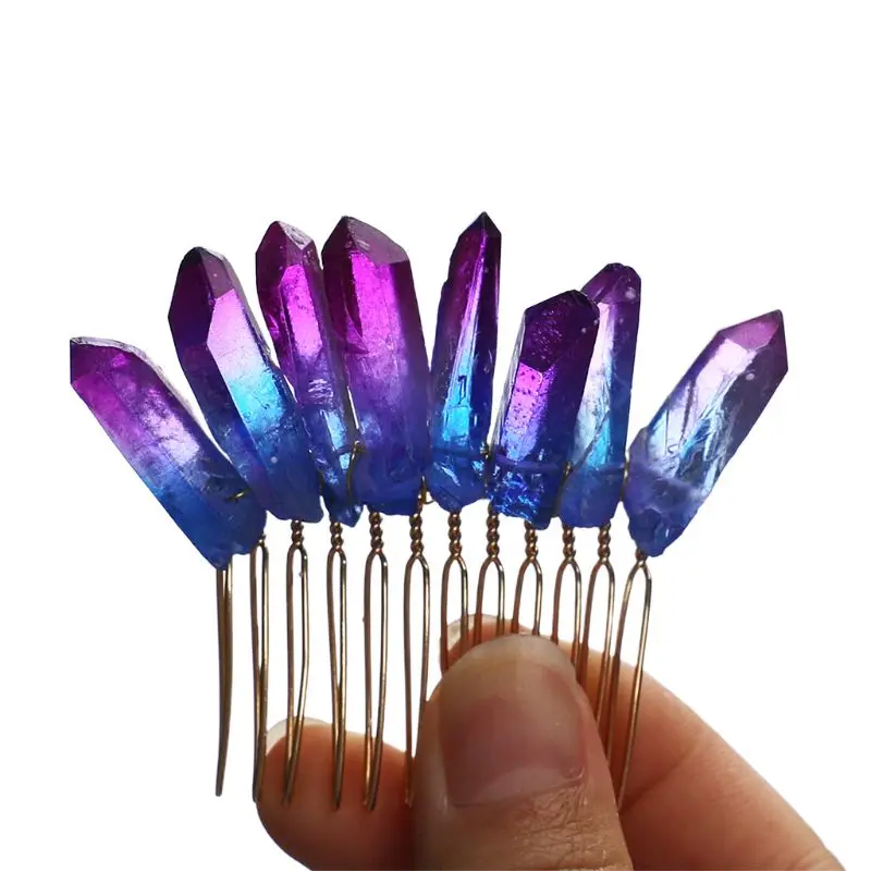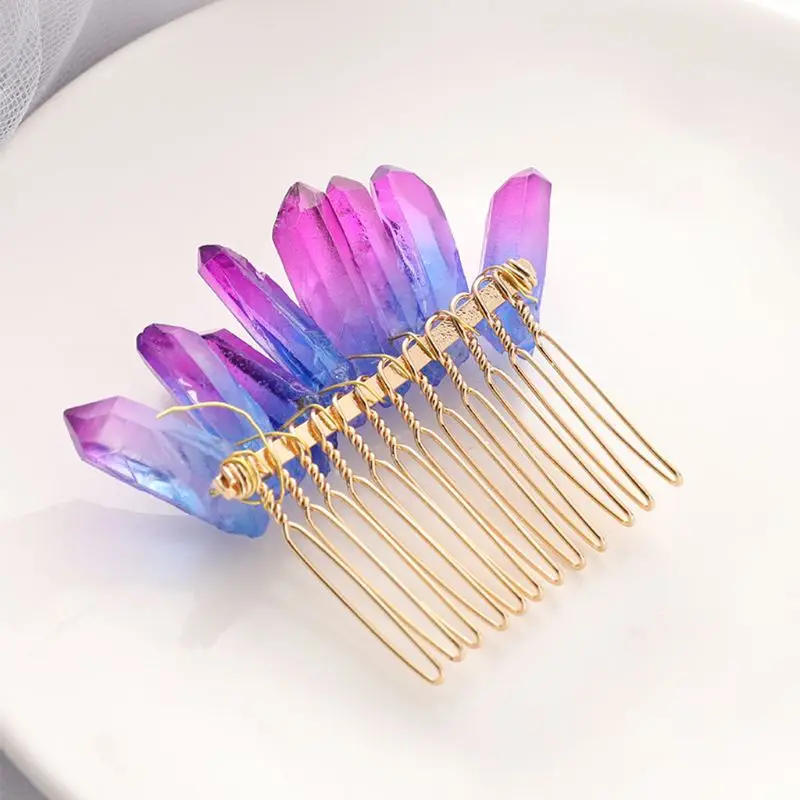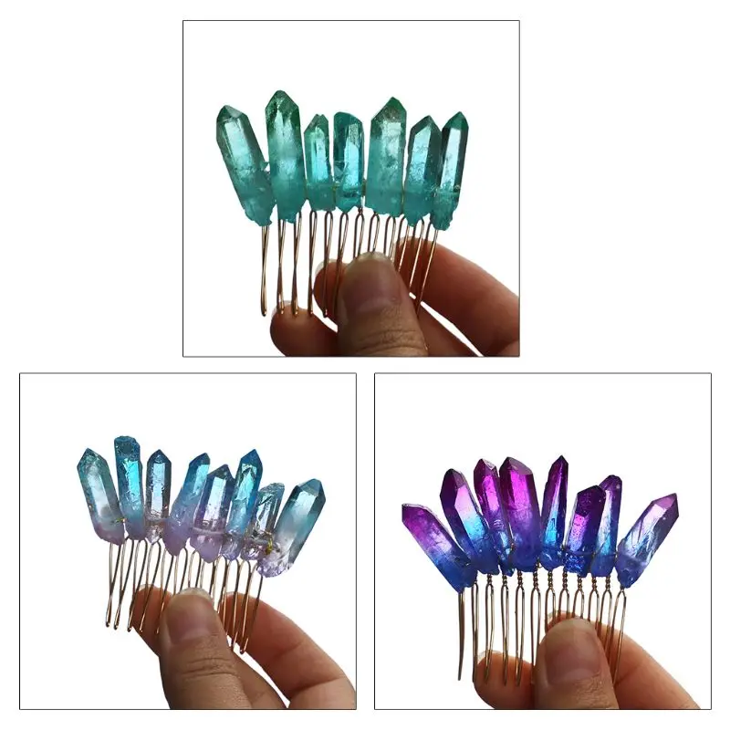 Необработанные Кристальные камни ручной работы с градиентным цветным дизайном, изготовленные на металлической основе с медной проволокой, один размер подходит для женщин и девочек.