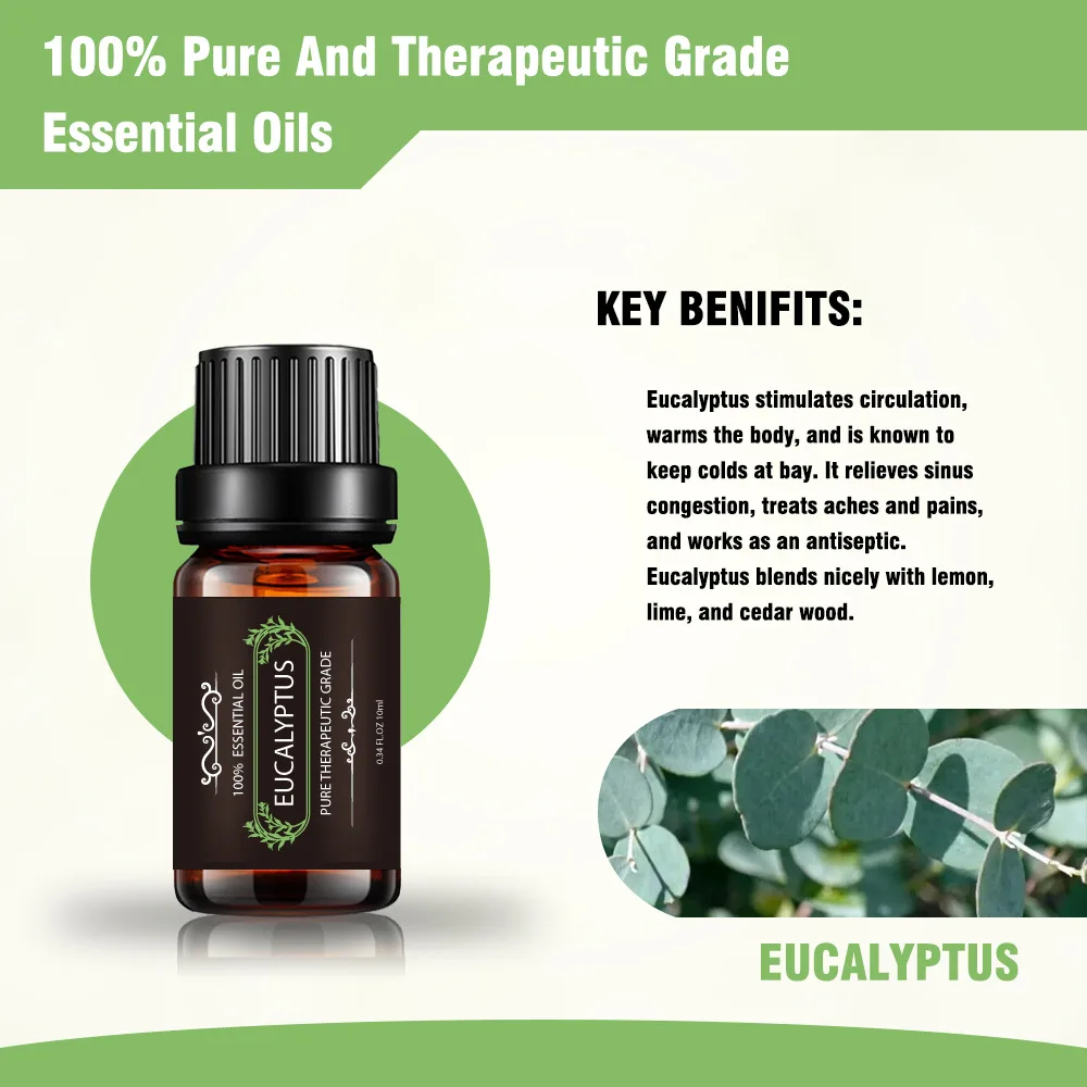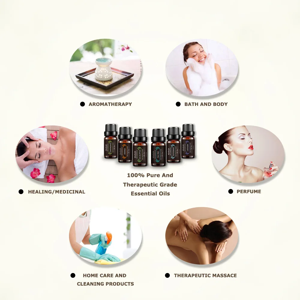 Название продукта: набор из шести бутылок эфирного масла Спецификация: 6*10 мл/коробка (Лаванда, чайное дерево, мята, эвкалипт, лемонграсс, сладкое оранжевое эфирное масло)