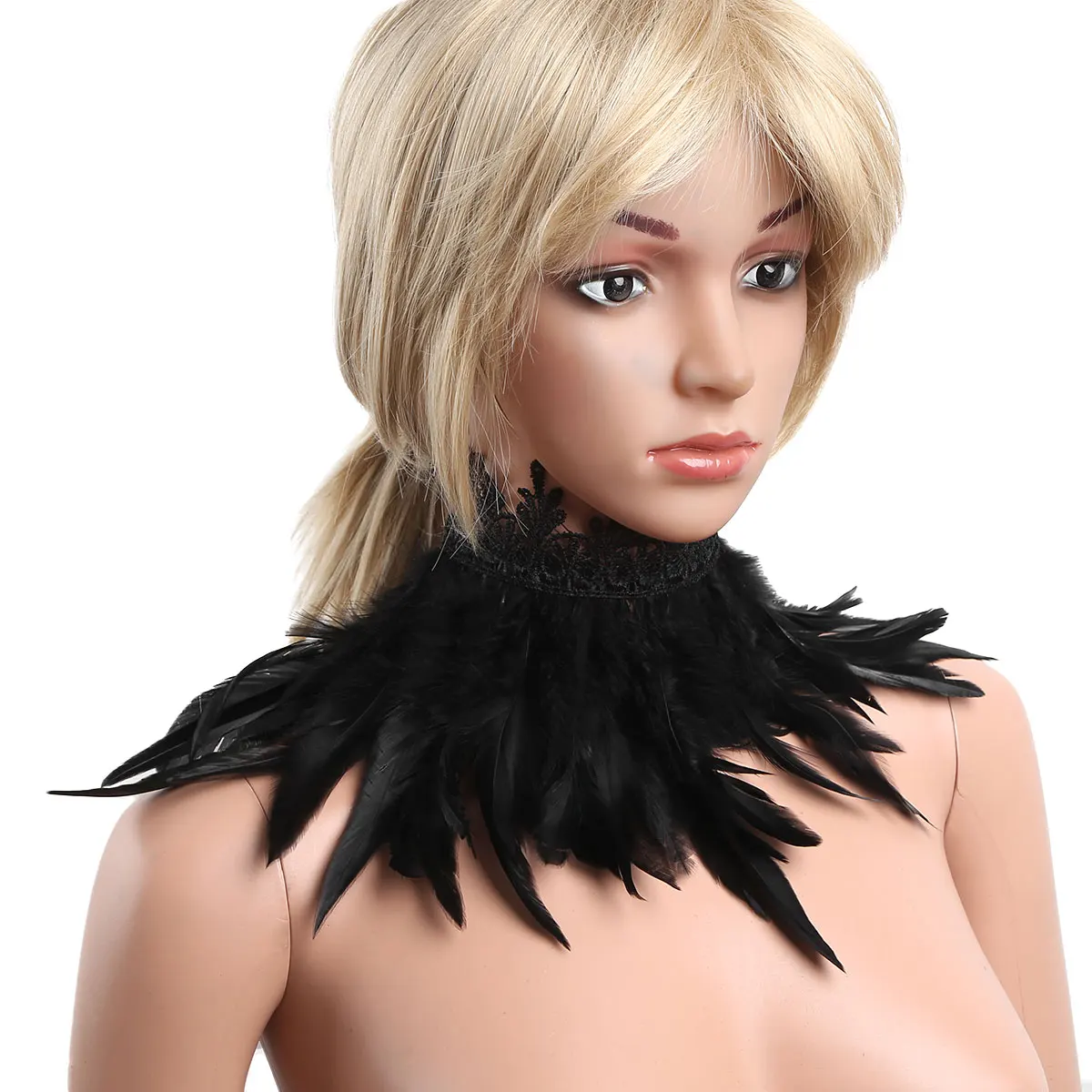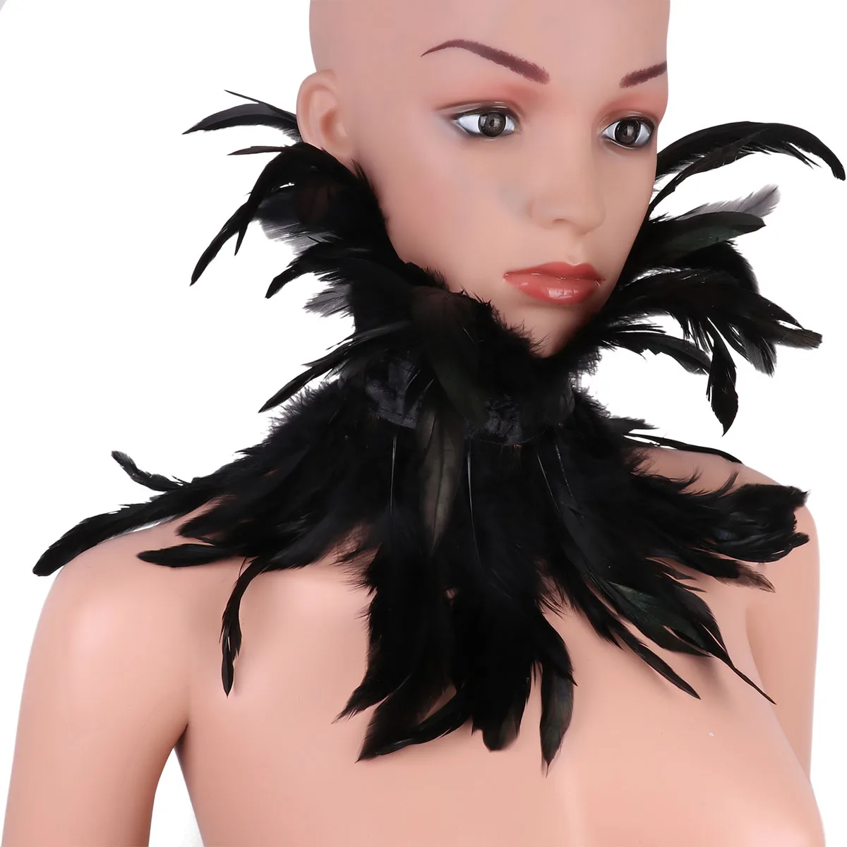 Сценическая накидка для выступлений, викторианская накидка из натуральных перьев, шаль, накидка на плечо, готический воротник с ленточными завязками для костювечерние НКИ