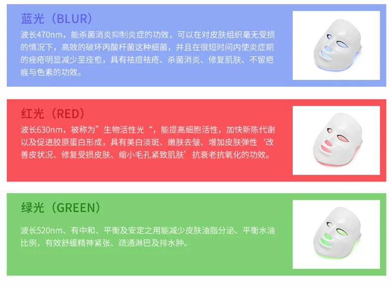 Светодиодный инструмент для красоты: В светодиодный косметический инструмент для основан на принципе светильник облучения и продуманный дизайн патентов пользователю о том, чтобы обратить внимание на светодиодный с низким содержанием углерода защиту окружающей среды технологии, который является безопасным и простой, И может быть повторно использован для достижения цели поддержания кожи лица. Он в корне решает проблемы отбеливания и старения кожи, то есть: для увеличения активности клеток; Для содействия метаболизму клеток, так что кожа выделяет большое количество коллагена и волокнистой ткани, чтобы заполнить себя. Ускоряет возврат крови, повышает эластичность кожи, улучшает пожелтение и тусклость кожи, обеспечивая отбеливание, омоложение кожи, защиту от морщин, светильник и другие восстанавливающие эффекты. Примечание: 1. Если вы хотите, чтобы эффект маски улучшился, мы предлагаем вам использовать профессиональный реляционный продукт по уходу за кожей в то же время, светодиодный светильник будет способствовать усвоению продукта по уходу за кожей, повышает эффективность средств по уходу за кожей, а затем улучшает эффект. 2, он не будет сразу видеть эффект, ему нужно некоторое время, чтобы восстановить вашу кожу, поэтому Продолжайте использовать его и будьте терпеливы. 3. Используйте при первом использовании функцию микро-тока, если вы используете самую высокую интенсивность в первый раз, ваша кожа может быть шокирована. 4. Если ваше лицо имеет рану, не рекомендуется использовать эту функцию микро-тока до тех пор, пока рана не восстановится. 5. Включите питание после того, как Наденьте маску, выключите питание, прежде чем снять маску, не смотрите прямо на светодиодный светильник, иначе ваш глаз может повредиться. Люди, которые не могут использовать эту маску Беременным женщинам, детям, болезням щитовидной железы, аллергическому человеку светильник, применение лекарственных средств может вызвать аллергию.