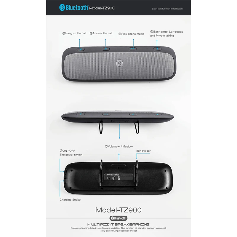 Быстрая Доставка Hands free Bluetooth автомобильный комплект солнцезащитный козырек беспроводной динамик телефон многоточечный динамик V4.2 широковещательный идентификатор вызова