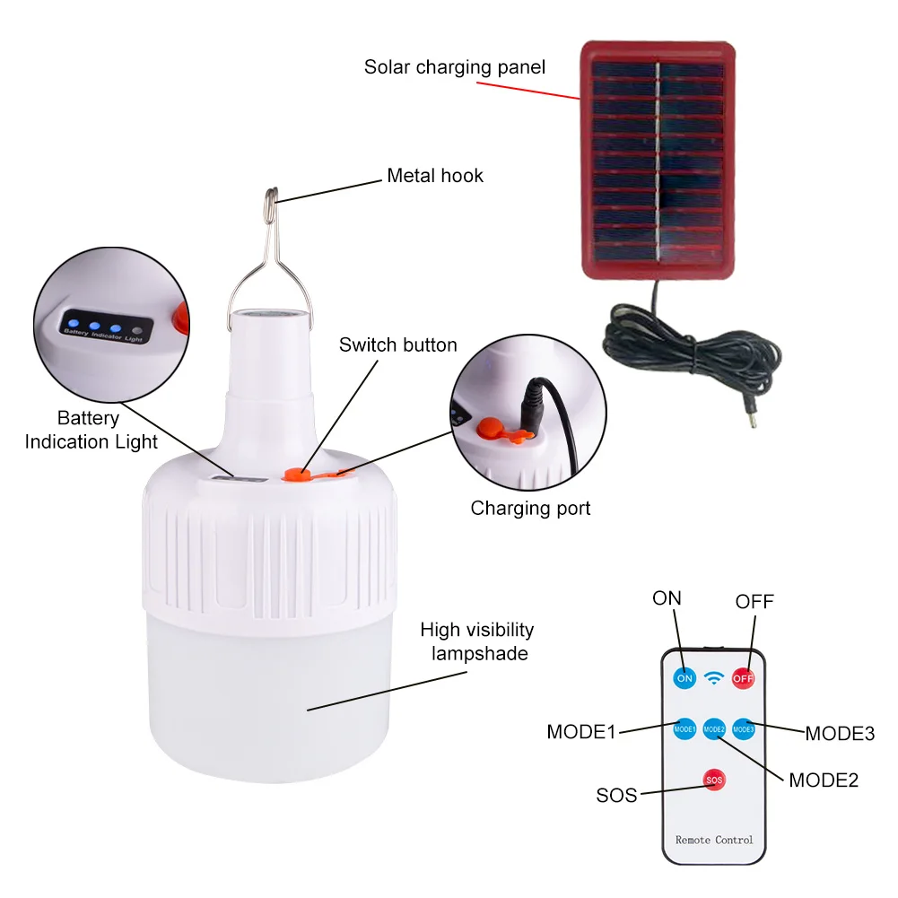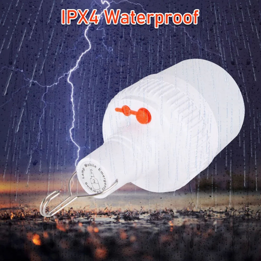 Лампа для кемпинга с подзарядкойОсобенности:Низкое энергопотребление, высокая яркость, стабильная производительность.Есть два светильник мА светового ing для выключателей: сильный светильник и слабысветильник.Встроенный перезаряжаемый литиевый аккумулятор автоматически заряжается при подключении к розетке (адаптер питания не входит в комплект).Легкий, компактный и прочный. Оснащен металлическими крючками, легко повесить и переносить.Он подходит для аварийного освещения на открытом воздухе кемпинга и рыбалки в ночное время.Спецификация:Материал: абажур из полипропилена + металлический крючокЦвет светильник: белыйРежим освещения: 2 режима (высокий-низкий)Размер: 14 см х 8 см/5,5 "х 3,1"Вес: 99 гКласс водонепроницаемости: IPX4Питание: встроенная перезаряжаемая литиевая батарея 1*18650Емкость аккумулятора: 1200 мАчМетод зарядки: Зарядка постоянного токаВремя работы: 4 ч (ярсветильник)Посылка входит:1 наружная аварийсветильник лампа1 x кабель для зарядки