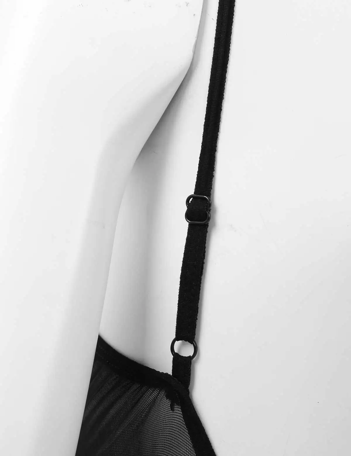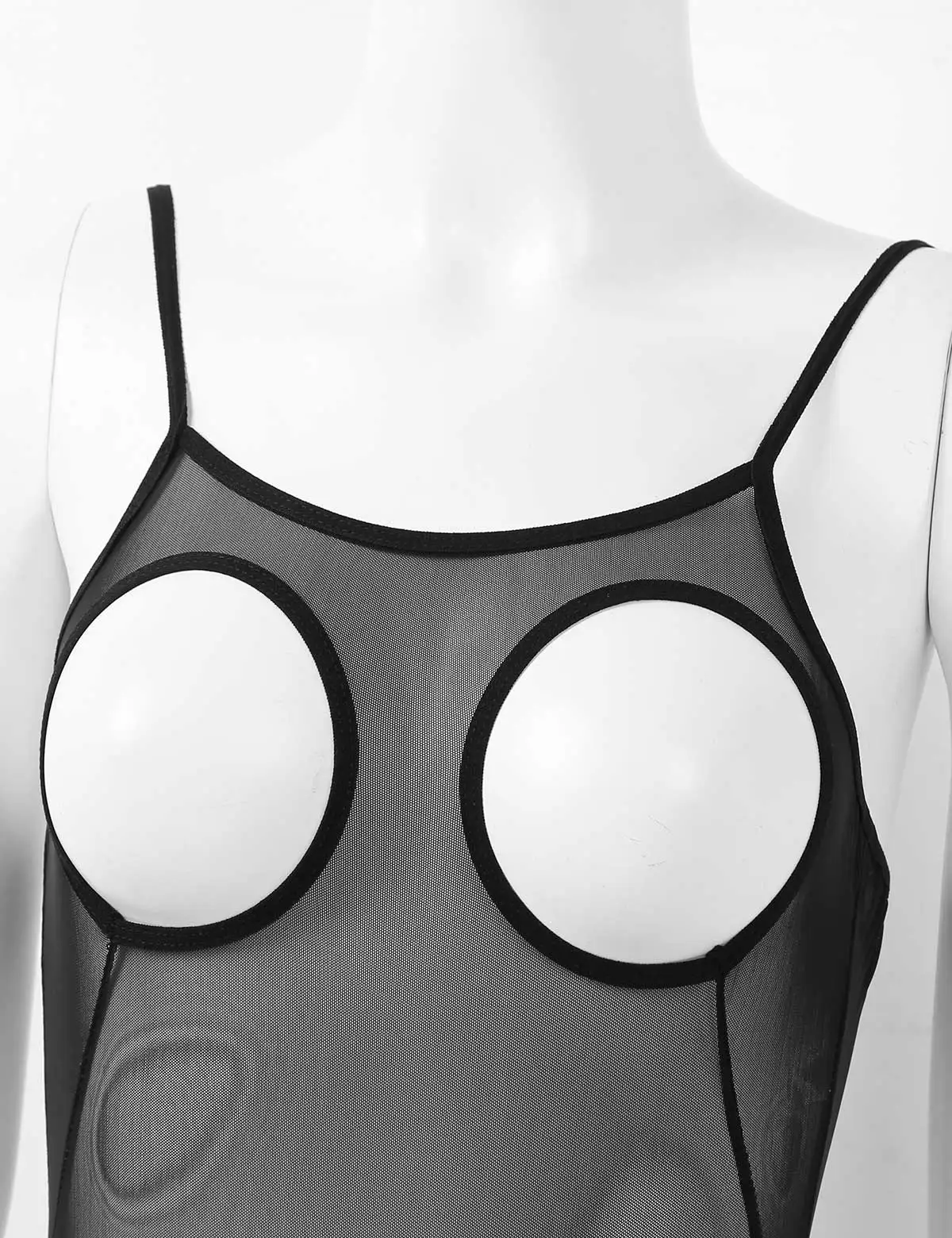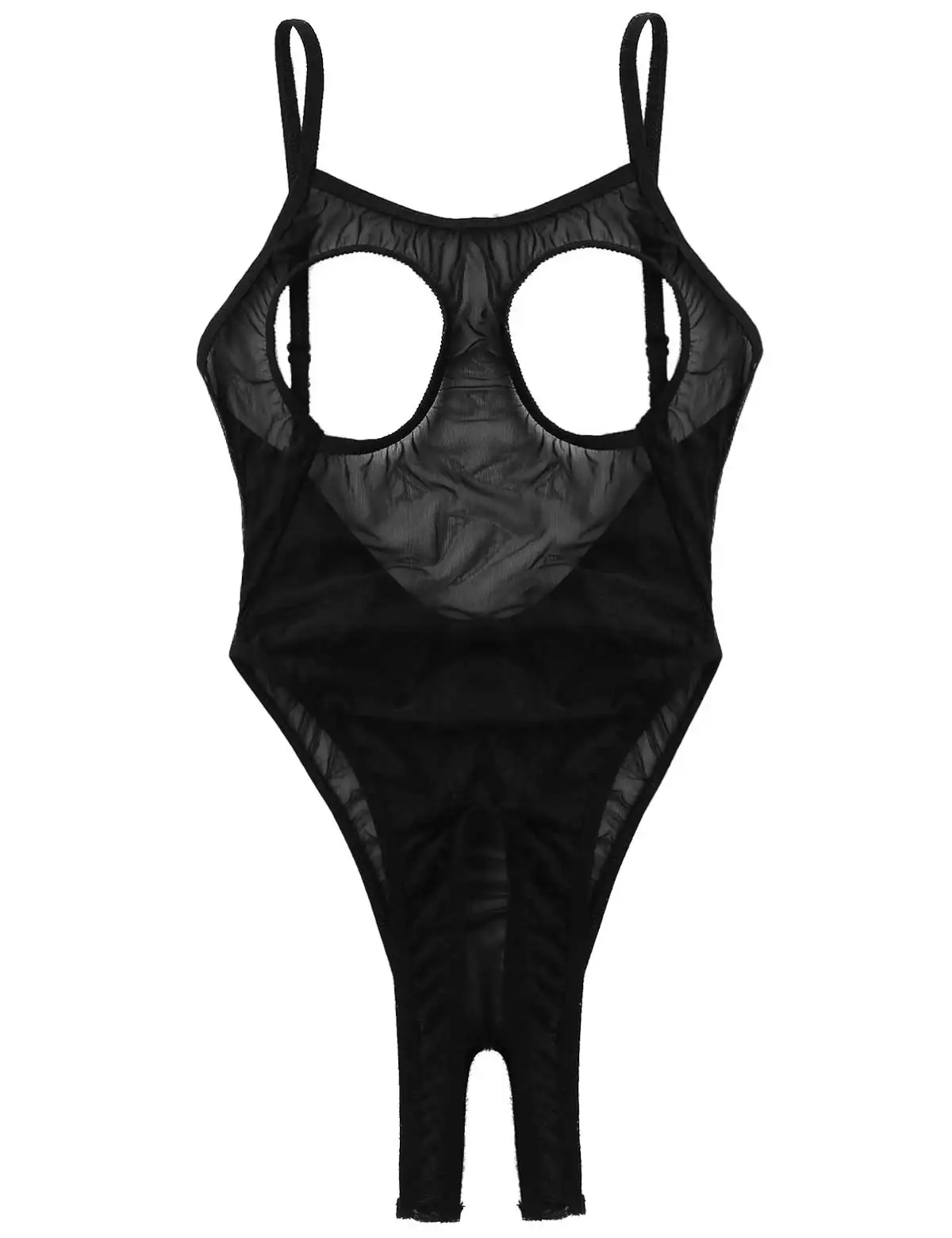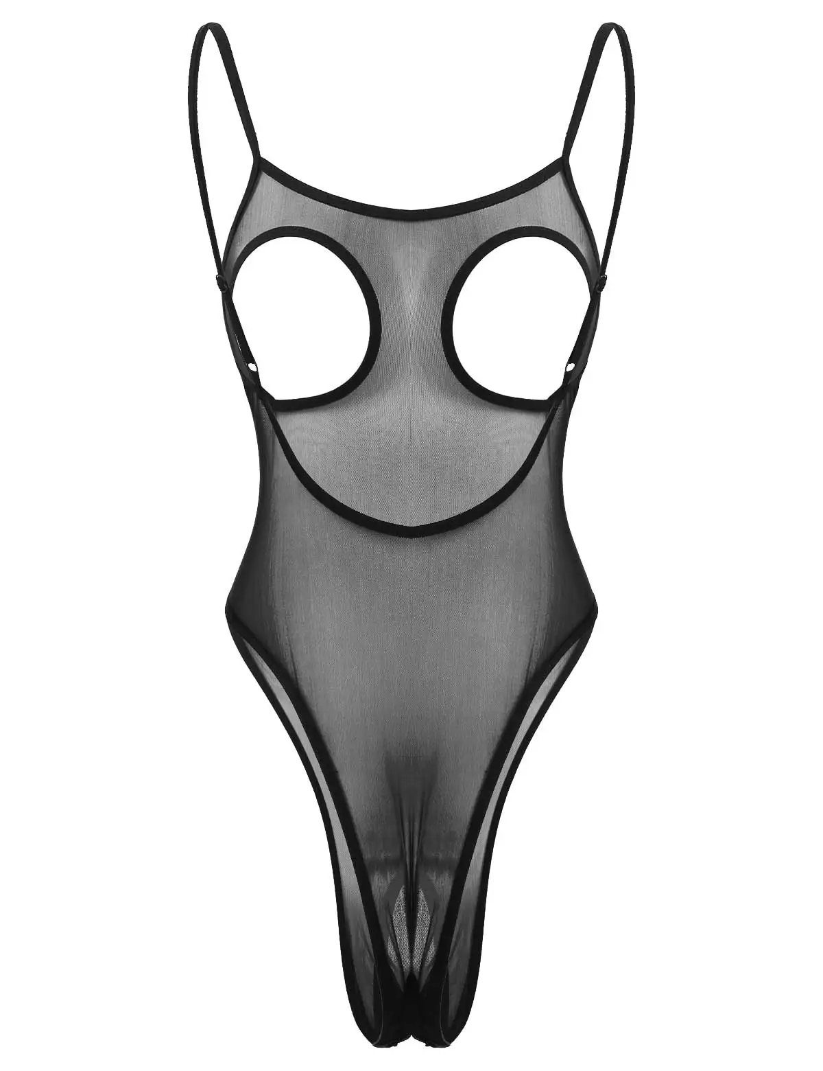Прозрачный Сетчатый Дизайн с регулируемыми бретельками на бретельках, вырезами на груди, открытой спиной и вырезами, высоким вырезом на ногах.