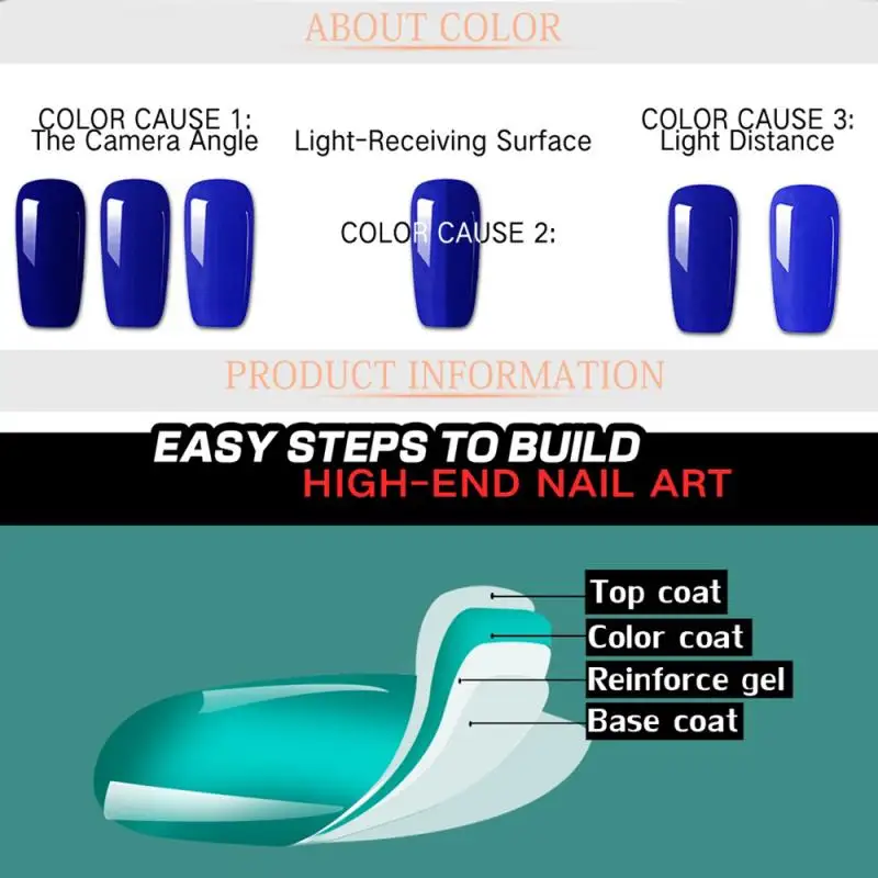 Длительный срок службы не менее 3 недель, красота и супер яркие ногти для вас.
