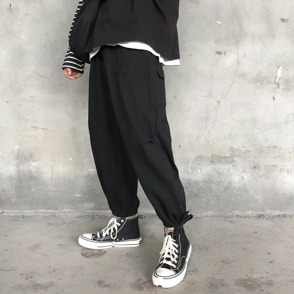 Модные мужские мягкие дышащие свободные брюки с завязками на лодыжках