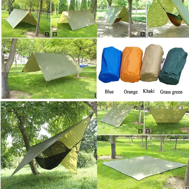Его можно использовать в качестве тента брезента, гамака для укрытия, простой тент, тент, наземный лист, солнцезащитный козырек, коврик для пикника, отличная идея для альпинизма и пешего туризма, кемпинга, треккинга и других видов активного отдыха на свежем воздухе.