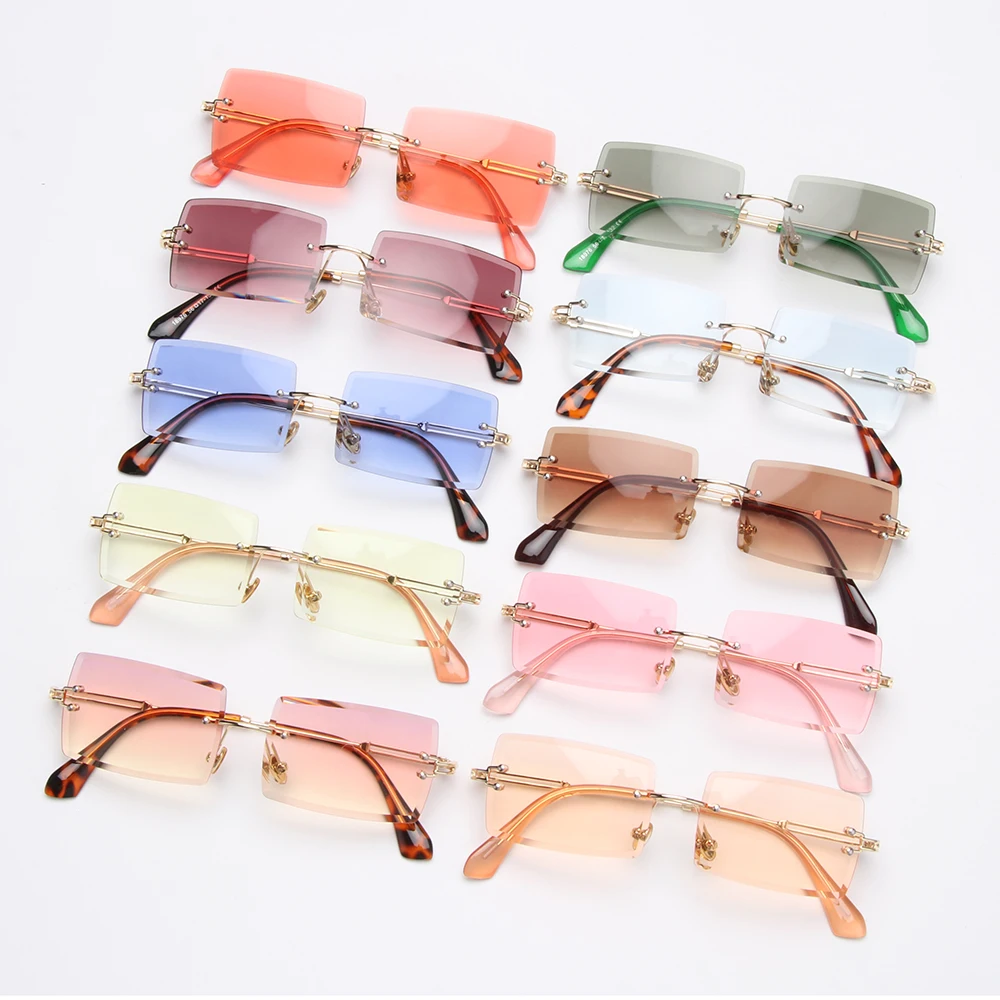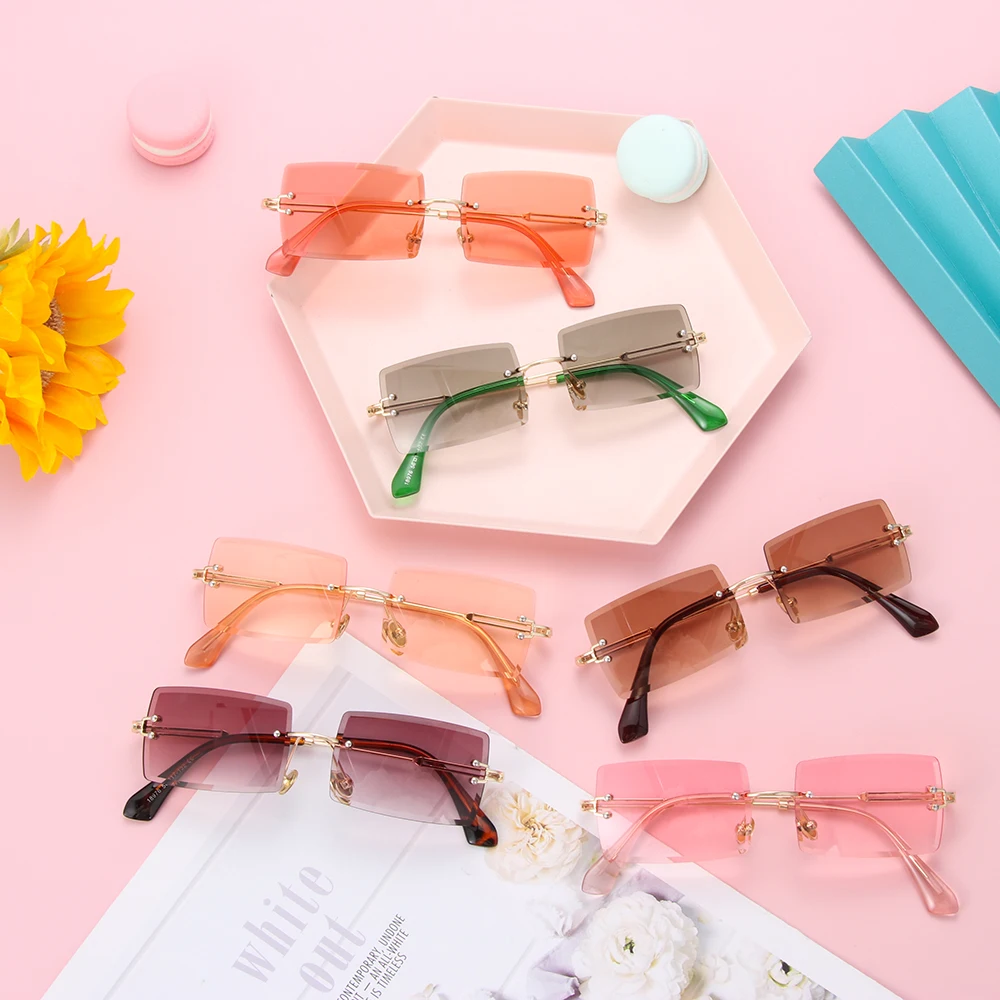 2020 Модные мужские и женские летние солнцезащитные очки без оправы модные маленькие прямоугольные солнцезащитные очки для путешествий UV400