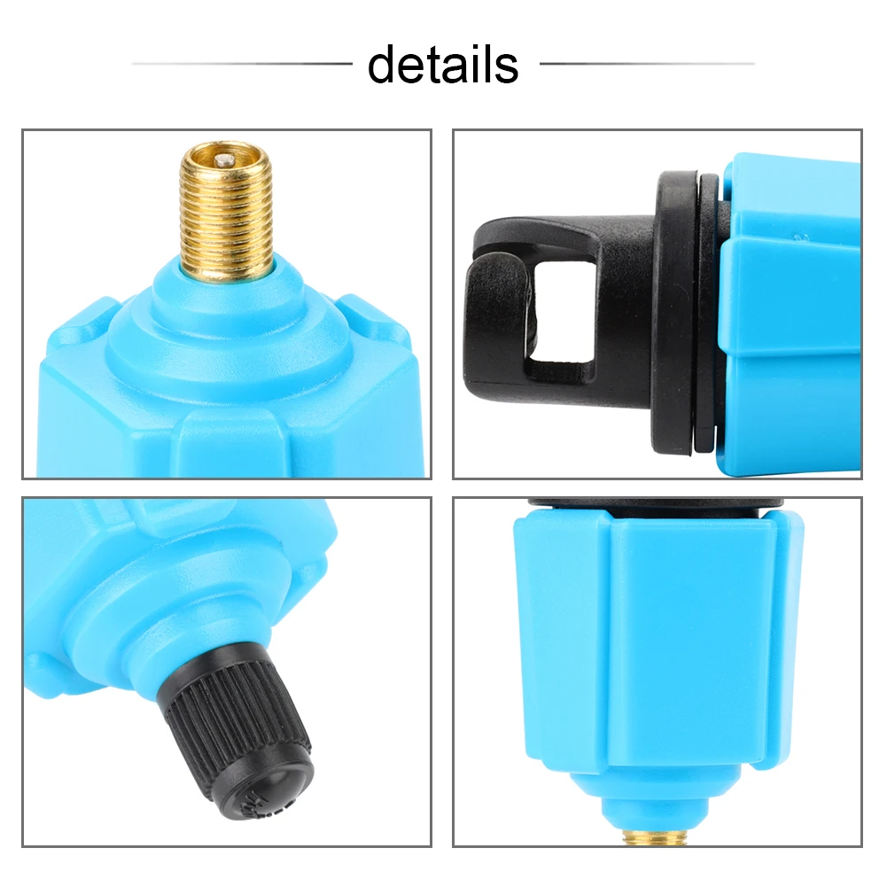 This adapter can make air inflator become compatible with your inflatable boat or board. Made of quality plastic and alloy material, resistant high pressure, durable to use. Lightweight and portable, easy to carry and store. Widely applicable to various canoe, kayak, etc. Useful tool for inflating your boat with normal inflator, not need to buy an inflator dedicated for canoe.