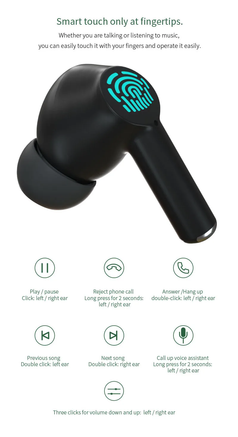 Пробуждение Siri: Нажмите и удерживайте любую гарнитуру в течение 2 секунд, чтобы проснуться Siri.