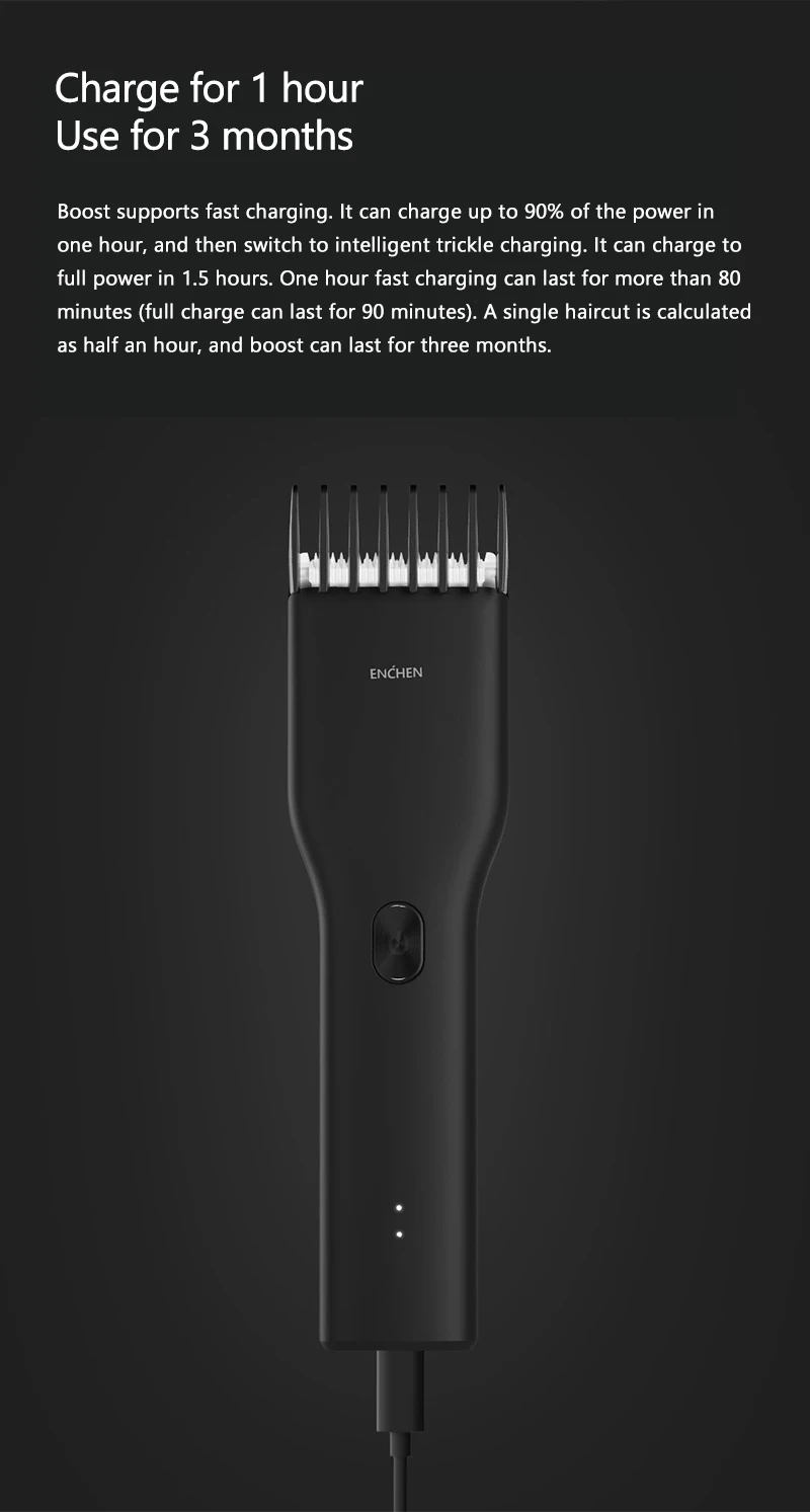 Нормальная начальная скорость составляет 4500 об/мин. Это подходит для обычного качества волос, чтобы нажать кнопку, чтобы начать режим «Турбо экстремальной скорости в отдалении, с сильным выходом 5800 об/мин. Он может легко обрезать густые волосы и избежать конфуза прилипания волос
