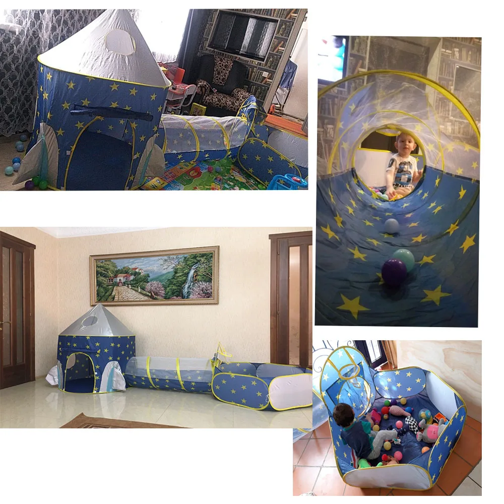 Портативный 3 в 1 космический корабль детская палатка Tipi сухой бассейн ракета корабль палатка в виде вигвама для детей мяч бассейн коробка детский дом мяч яма