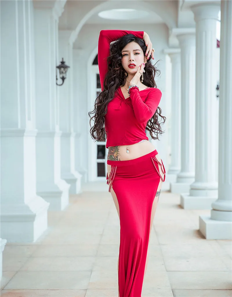 Восточный танец живота женский набор костюма для танца живота танцевальный костюм комплект Топ и длинные юбки с разрезом шорты профессиональная сексуальная одежда для выступлений