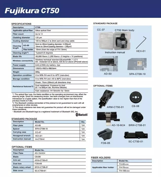 По сравнению с другими существующими режущими ножами CT50 обладает более высокой ударопрочностью и позволяет персоналу заменить лезвие, значительно сокращая время обработки и затраты на техническое обслуживание для клиента. CT50 может автоматически изменить положение режущего лезвия в соответствии с состоянием резания волокна на сплайсере плавления через Bluetooth. Кроме того, CT50 может завершить резку волокна и Сбор отходов волокна в один шаг.