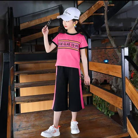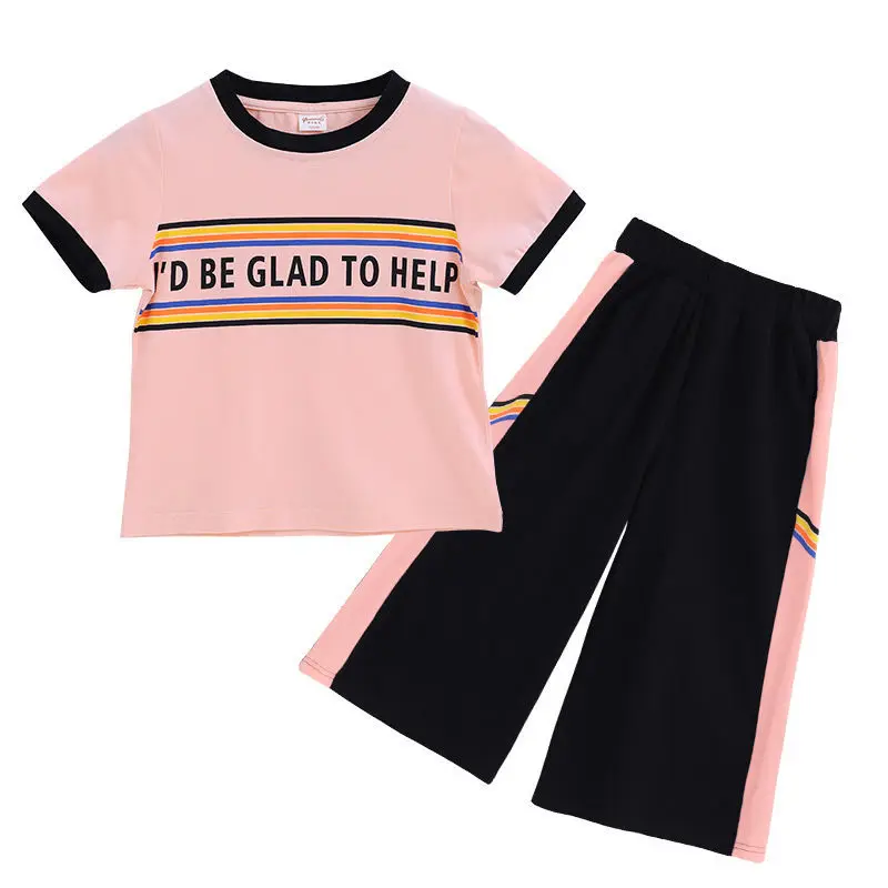 Костюм для девочек, летний модный спортивный комплект одежды, короткая детская одежда для девочек, шорты + футболка, комплект из двух предметов для 11, 9, 10, 8, 7, 5, 4, 3 лет