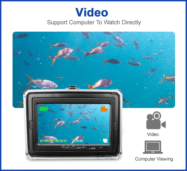 Эхолот-рыболокатор Erchang, двойная лампа, 24 светодиода, 7 дюймов, 15 м, камера для подводной рыбалки + монитор HD 1280*720 с видеозаписью, 16 ГБ, SD-карта