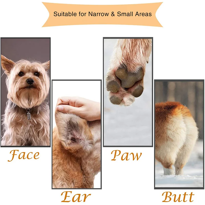 2. Узкая головка для стрижки обеспечивает высокую точность резки, удобно обрезать лапы, уши, глаза, лицо, ягодицы и другие чувствительные области.