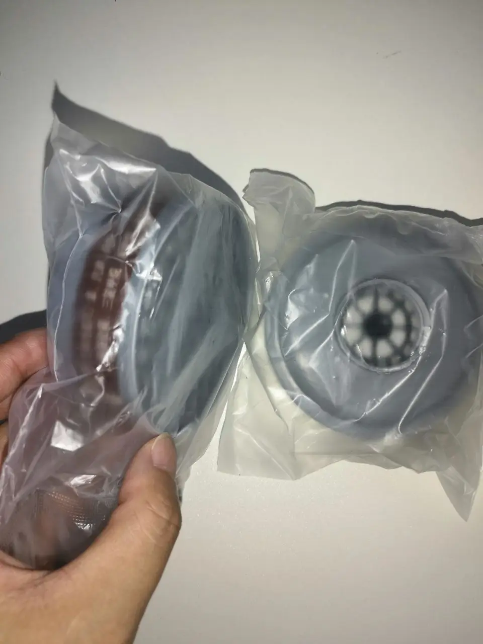3. Перед использованием респиратора маски необходимо сначала проверить, не повреждены ли детали, клапан выдоха и клапан выдоха на нижней части герметично запечатаны, картриджи с корпусом расположены близко друг к другу, коробка с фильтрующими канистрами свободна.