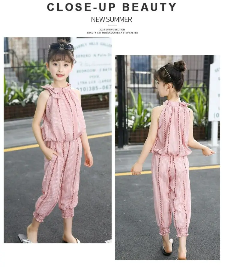 Детский комплект одежды для девочек, летний костюм в полоску для девочек 6, 8, 12 лет, повседневный Детский костюм для подростков, 2020