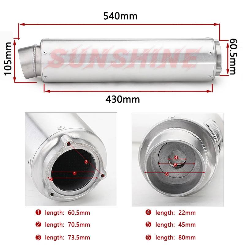 60 мм Универсальный выхлопной питбайк мотогонок модифицированный глушитель Escape Moto для CB400 ZXR XJR400 WR'S CBR400 нержавеющая сталь
