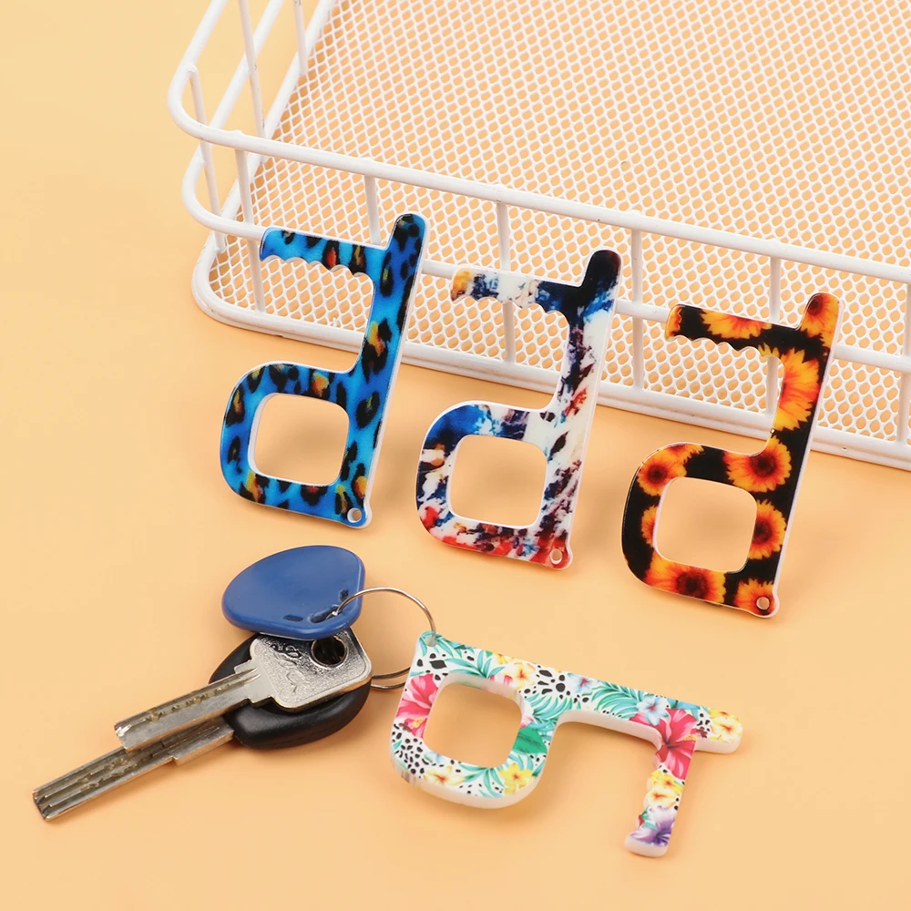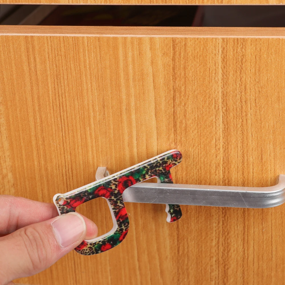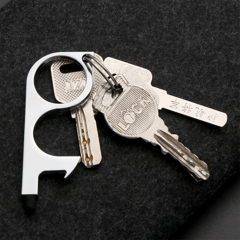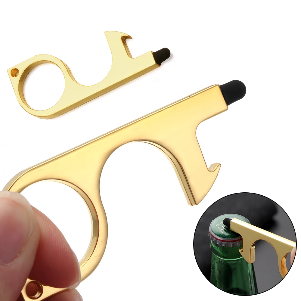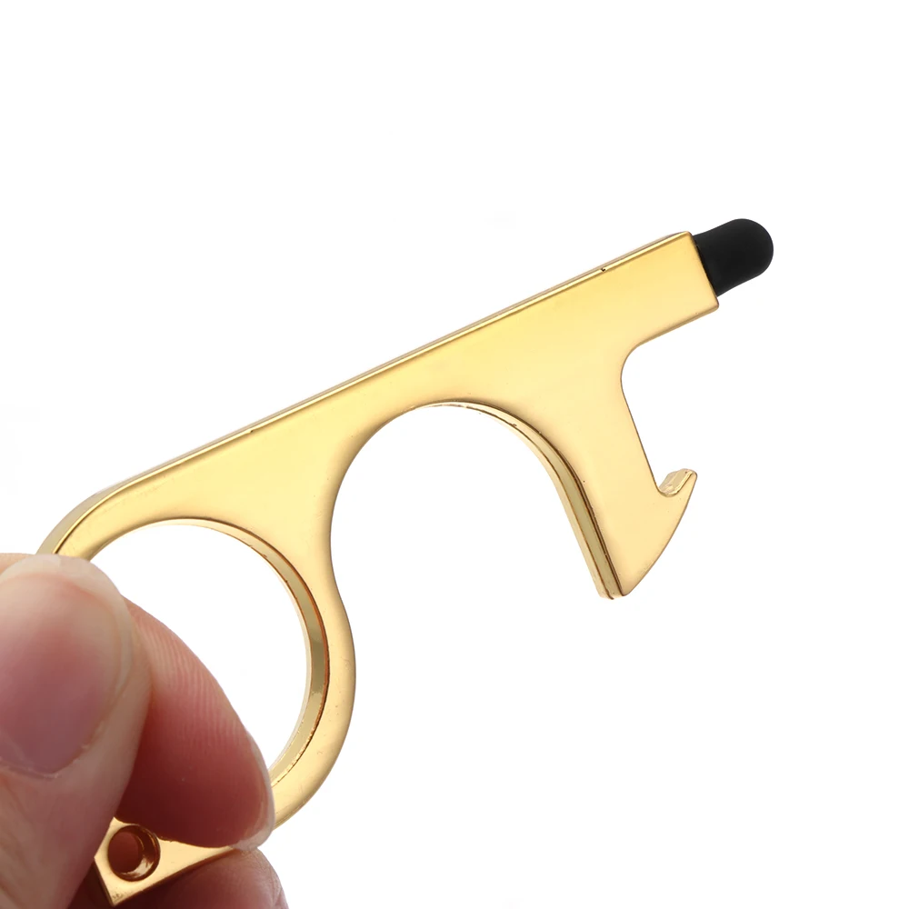 Portable Clean Key Door Opener Handheld Brass EDC Keychain No Touch Elevator Button Non-Contact Handheld Tool