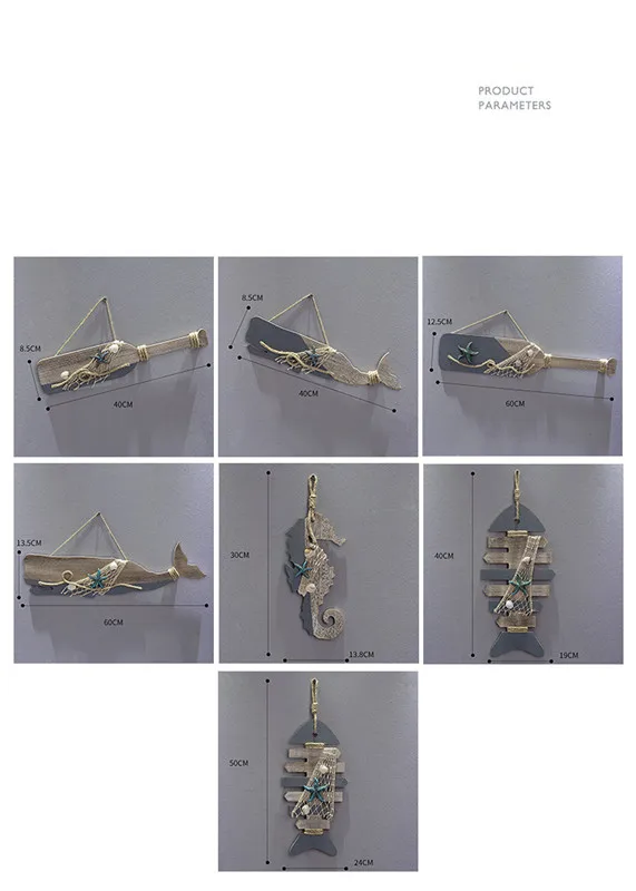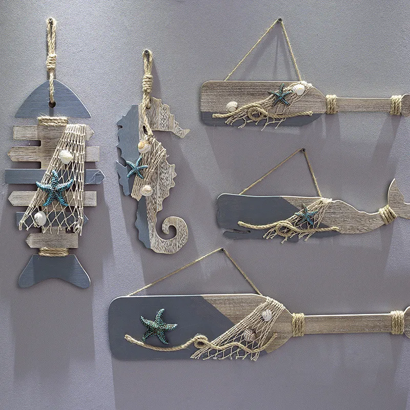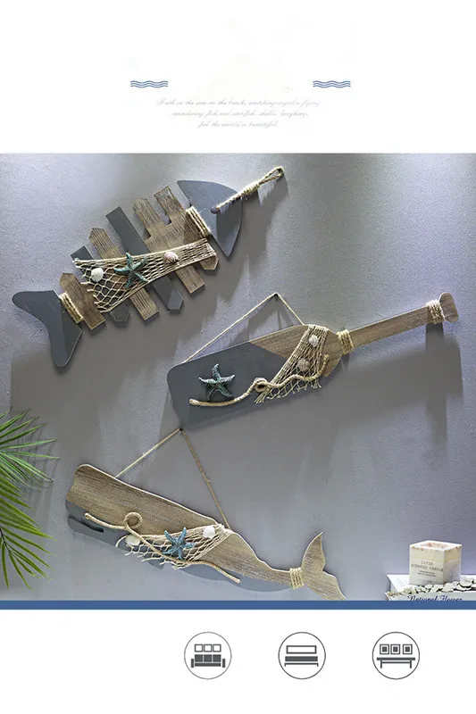 1 шт., подвеска в средиземноморском стиле с рыбьей костью, морской конь, кулон с изображением Кита, Океанский ветер, дельфин, кафе-бар, деревянная серая весла, настенное украшение для дома