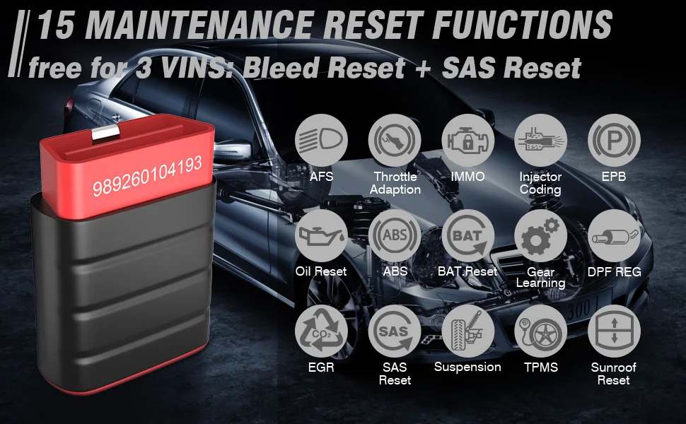 Что пользователь может получить без каких-либо дополнительных сборов? Функции OBD могут быть использованы на всех автомобилях для свободного срока службы Полная диагностика системы + сброс кровотечения + сброс SAS Теперь 3 VINs бесплатно в течение одного года. 5 моделей программного обеспечения бесплатно на один год Если вам нужно диагностировать больше транспортных средств или больше специальных функций? $14,95 за еще один вин (OBD + полная система + сброс bleed reset + SAS reset) $9,95 за еще одну службу сброса (для одной вин)