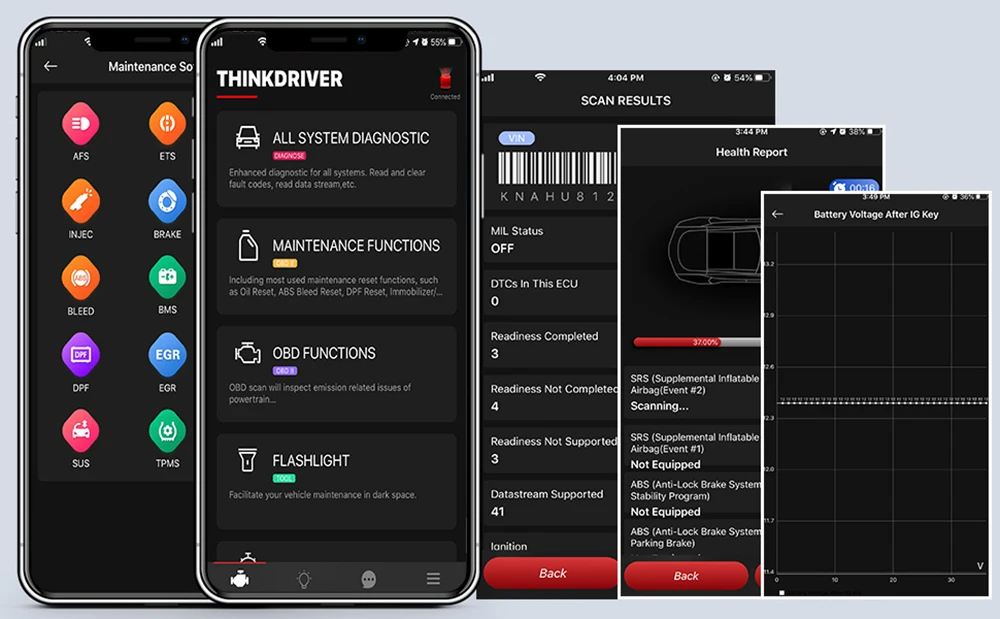 Функция диагностики всех систем THINKDRIVER Car: