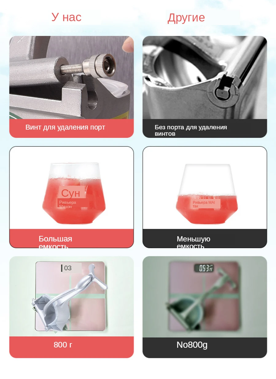 Спецификация: Тип изделия: ручная соковыжималка Материал: алюминиевый сплав Размер: прибл. 22,7*13*10,5 см/9,08*5,2*4,2 дюймов Длина ручки: прибл. 10 см/3,9 дюйма Характеристики: дизайн удаления, легко чистить Особенности 2: пятое поколение, большая емкость Особенность 3: удобный и простой в эксплуатации Диапазон использования: соковыжималка, может выжать апельсины, арбуз, лимоны, гайки и т. Д. Особенности: Изготовлен из высококачественного алюминиевого сплава, эффект Анти-ржавчины. Разработан специально для сдавливания мягких фруктов с кожей, такой как orange, гранат, грейпфрут. Цельный эргономичный дизайн, прост в эксплуатации. Используйте Принцип рычага, время и энергосбережение. Подкладка гладкая, с тонкими отверстиями, и остатки фильтра без усилий. Посылка: 1 х соковыжималка