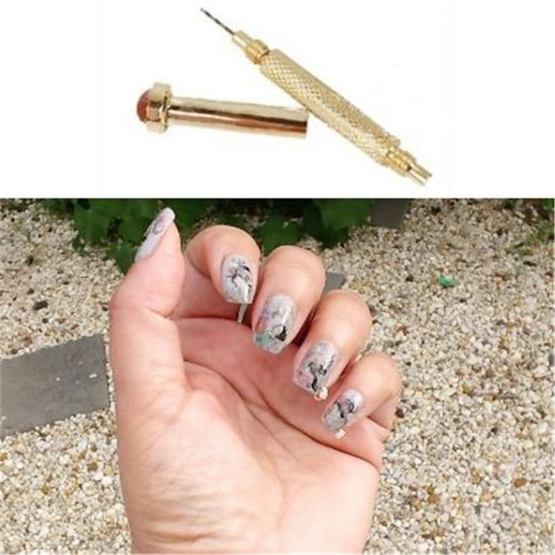 1 шт. красочные бусинки болтающиеся сверла Золотое серебряное кольцо дизайн шпильки отверстие инструмент для маникюра 3D украшения ногтей