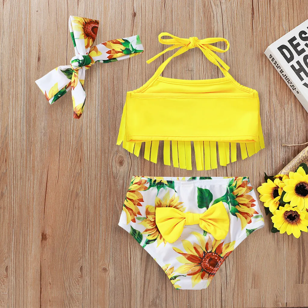 Детский летний купальный костюм с кисточками и принтом подсолнуха для маленьких девочек; Комплекты бикини